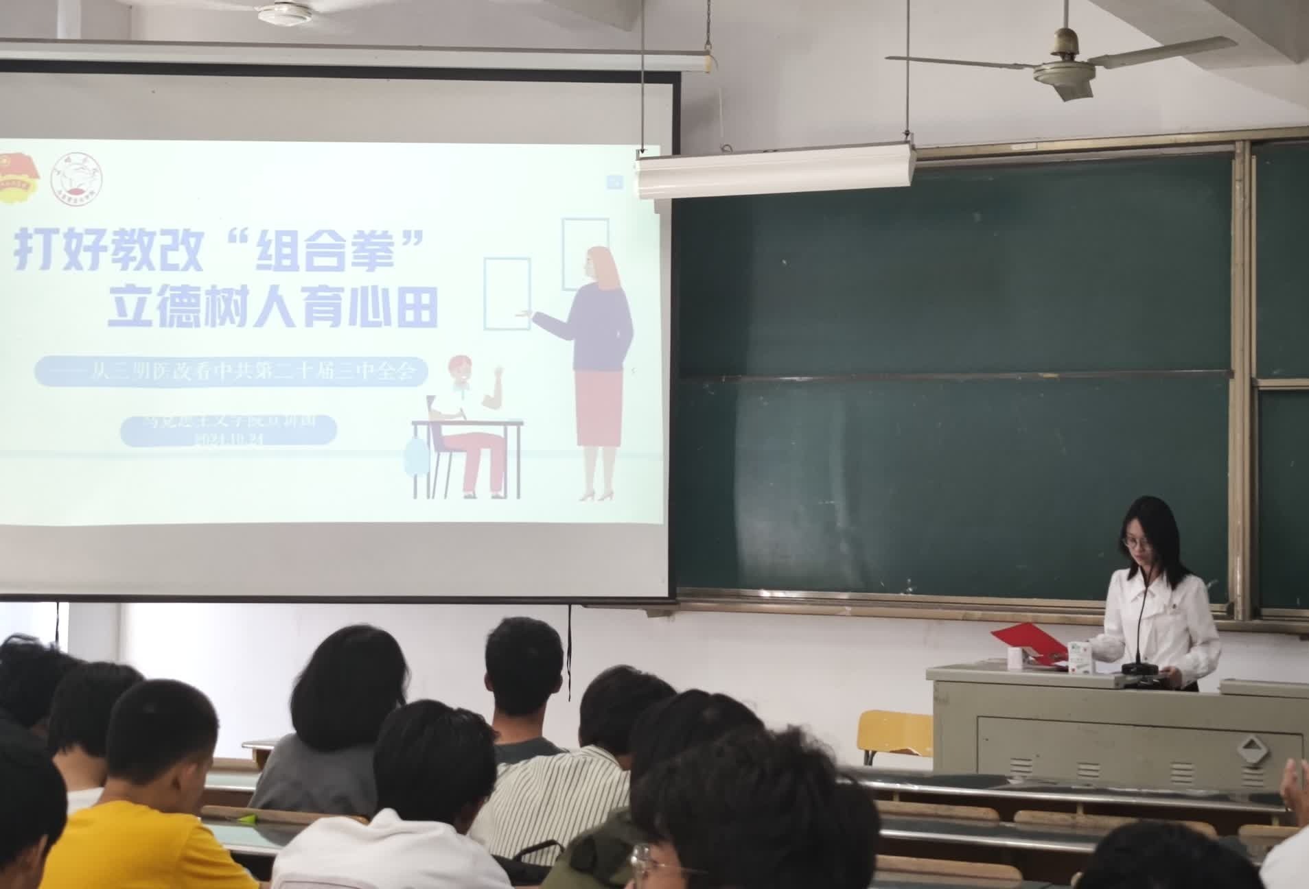 宣讲内容逻辑清晰,角度新颖,分别以《养老新政惠民生,改革举措暖人心》、《打好教改“组合拳”,立德树人育心田》为题,紧紧围绕《中共中央关于进一步全面深化改革、推进中国式现代化的决定》,全面阐述了党的二十届三中全会的重要意义、深刻内涵及全面深化改革的举措,同时结合三明实际讲述了三明养老改革和三明医疗改革真实事例,进一步深化了同学们对全会精神的理解。与会人员纷纷表示,通过此次宣讲会学习,对党的二十届三中全会精神有了更加全面的认识,之后将认真学习会议精神,做好相关精神的宣传贯彻落实。