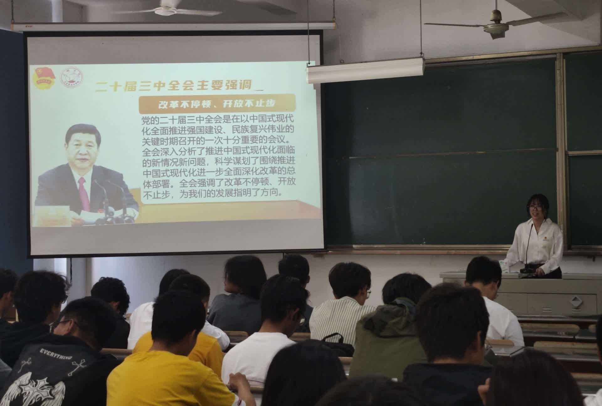 近日,机电工程学院开展“一站式”学生社区党的二十届三中全会精神宣讲。学生社区党员、入党积极分子、宿舍长代表共130余人参加。