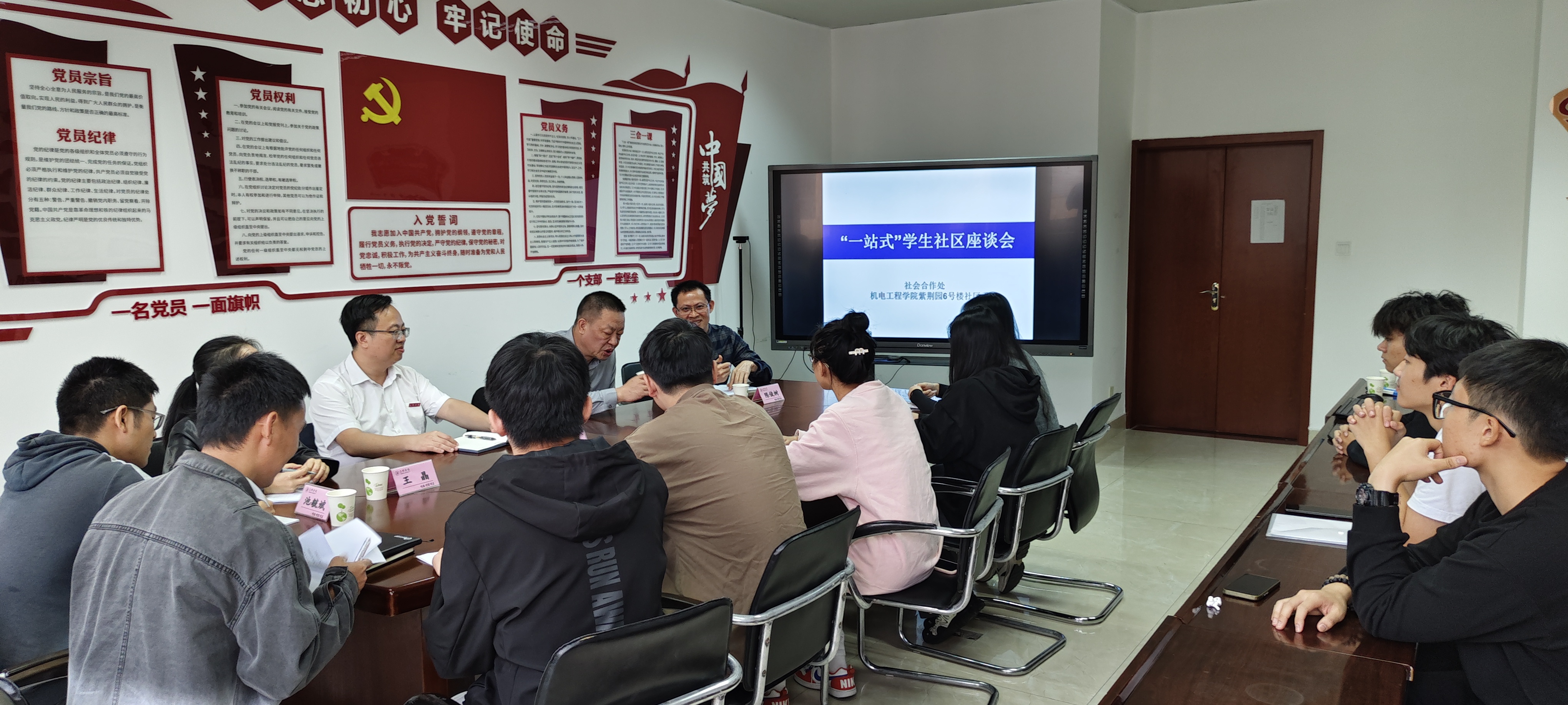 11月1日,机电工程学院与社会合作处开展“一站式”学生社区师生座谈会。社会合作处夏智勇一行、机电工程学院主要领导、学生代表参与了座谈会。