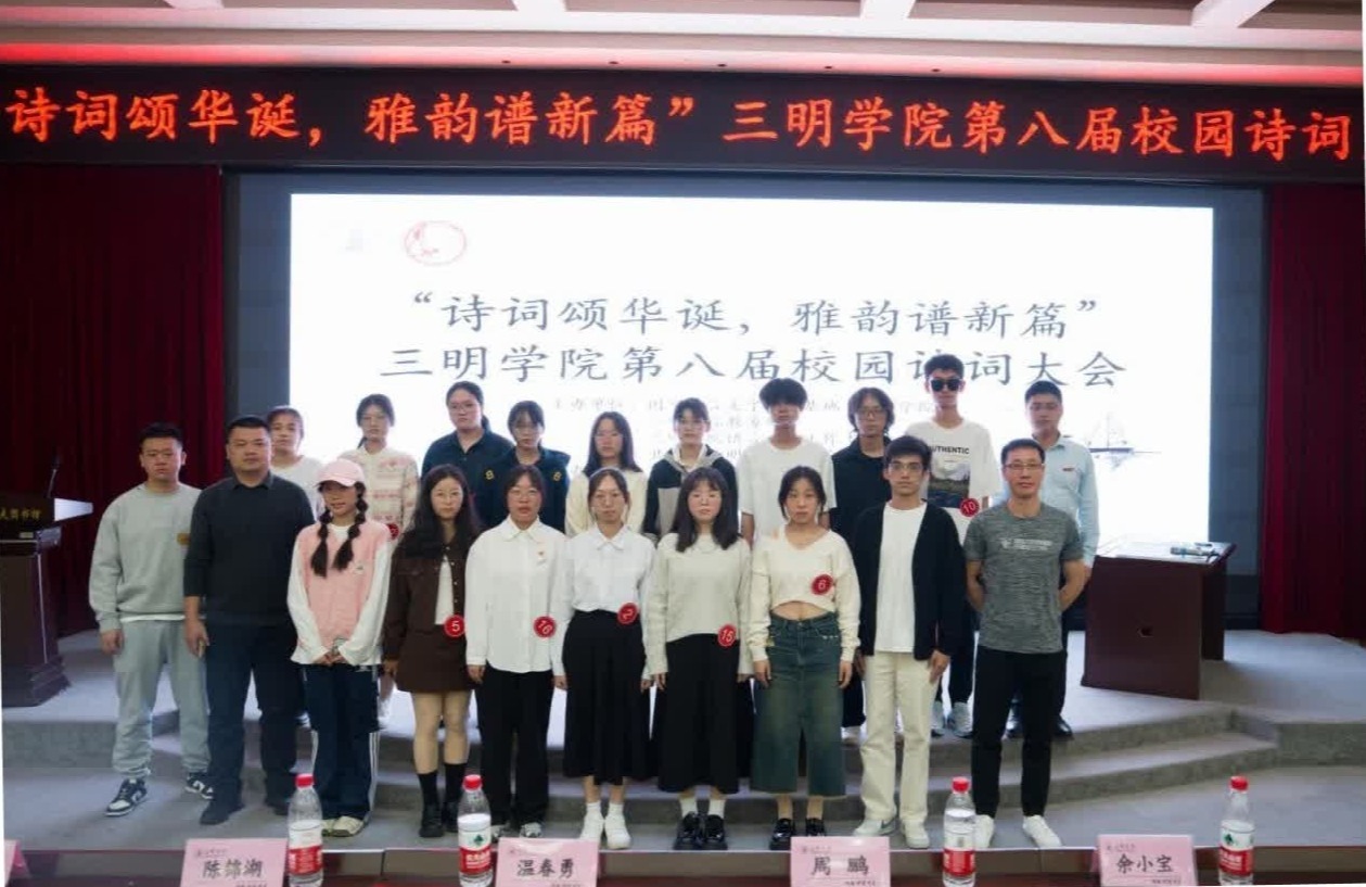 11月9日,三明学院第八届“诗词颂华诞,雅韵谱新篇”诗词大会在图书馆报告厅举行。