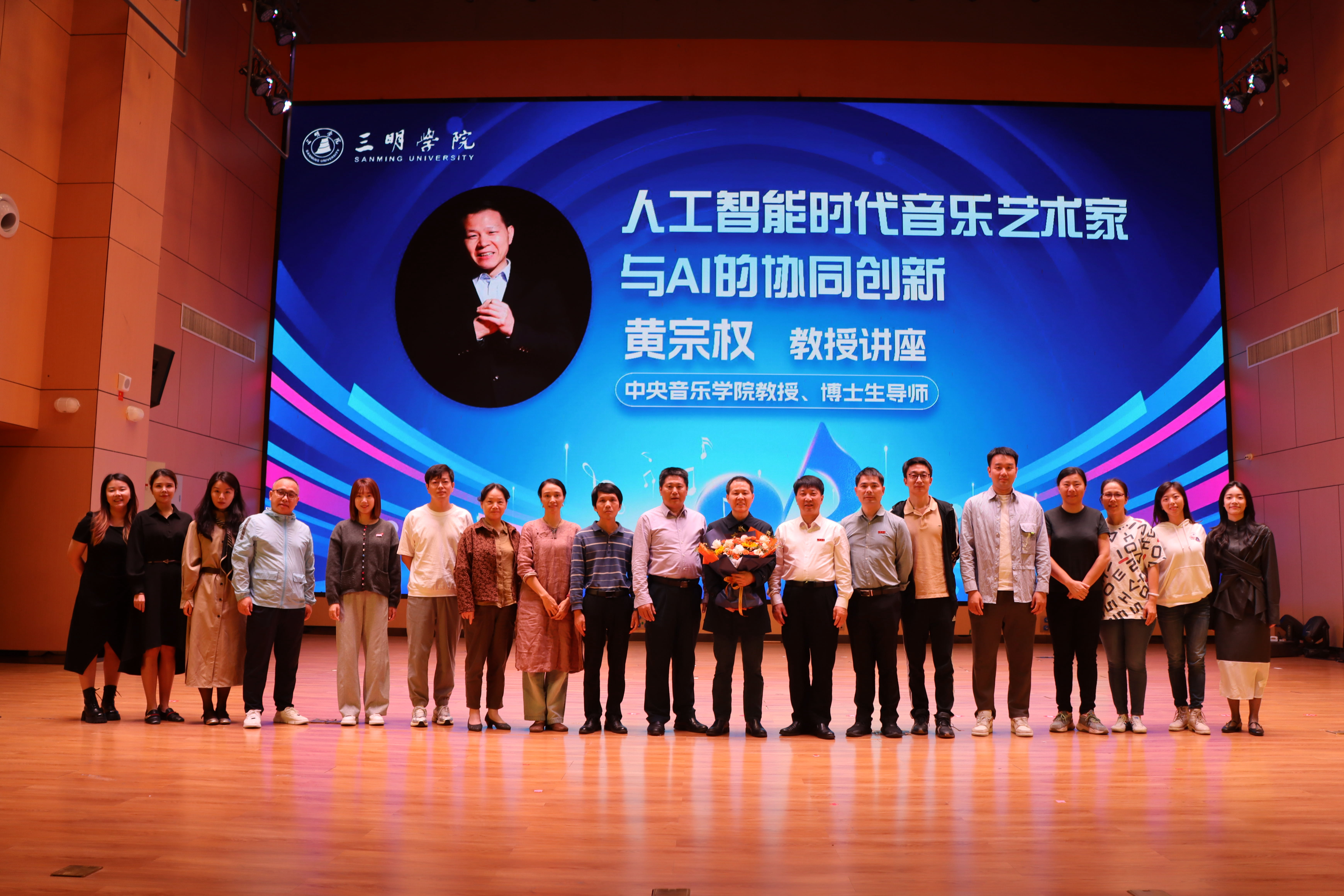 2024年11月18日上午,由三明学院教育与音乐学院承办的《人工智能时代音乐艺术家与AI的协同创新》专题讲座,在艺术楼音乐厅顺利举行。此次讲座由中央音乐学院博士生导师黄宗权教授主讲,共计200余师生参加。