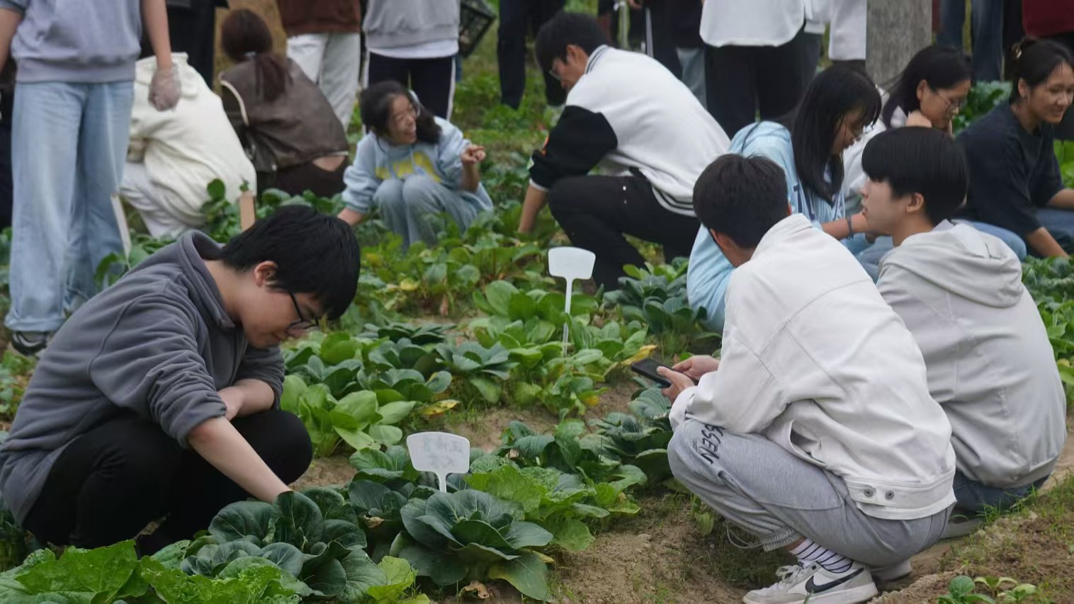 采采芣苢,薄言采之。樱桃萝卜、紫甘蓝、花瓶菜……“采”丰收大比拼活动中,师生们纷纷从课堂走向田地,亲自动手采摘自己种下的农作物,体验劳动人民“春耕、夏耘、秋收、冬藏”的智慧与艰辛,在一铲一锄中积累农事劳动经验、感受农事乐趣和农耕文化。