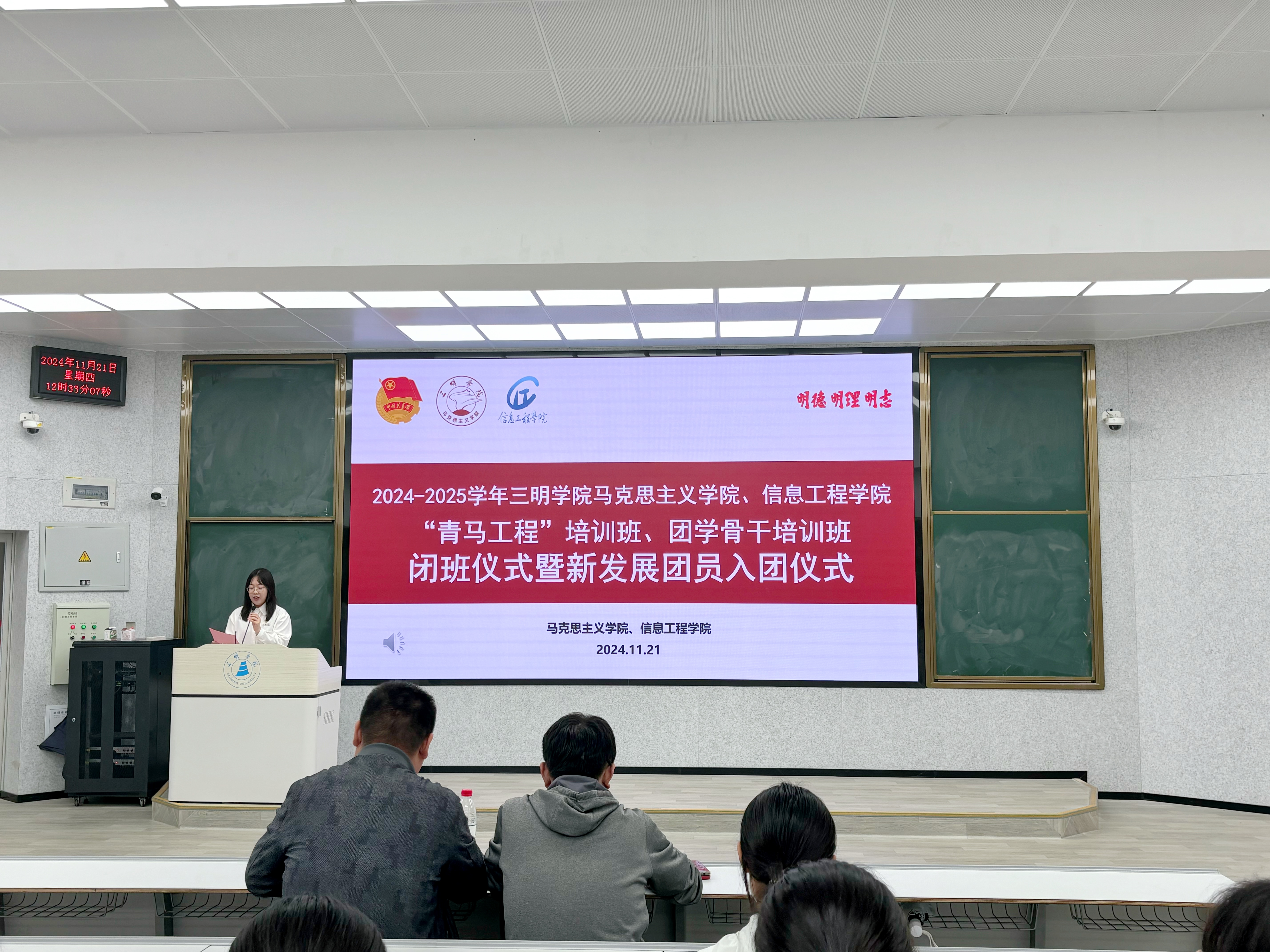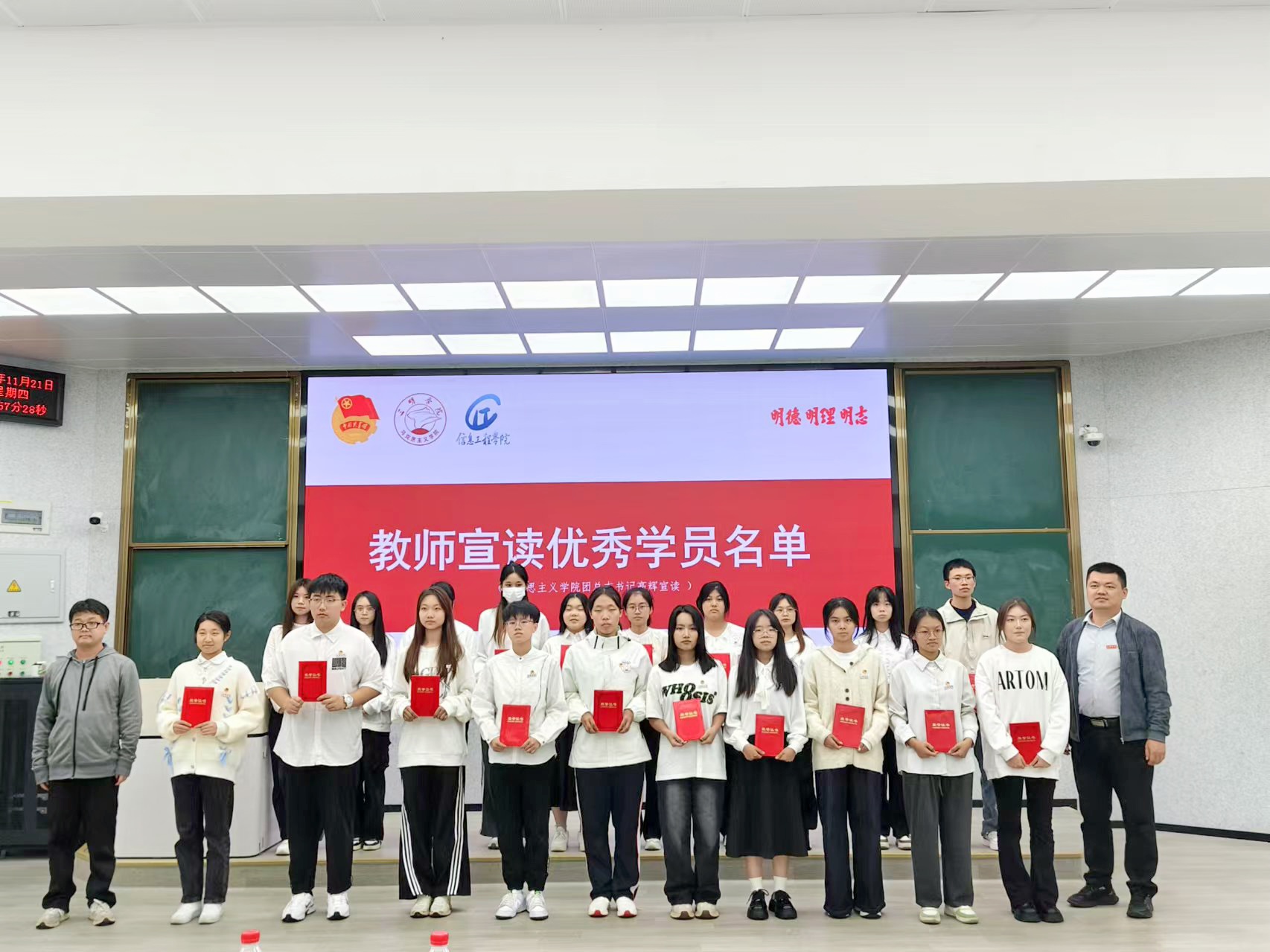 11月21日,马克思主义学院与信息工程学院在博学楼223联合举办“青马工程”大学生骨干培训班结业仪式暨新发展团员入团仪式。信息工程学院团委书记、马克思主义学院团委负责人以及培训班全体学员参与。