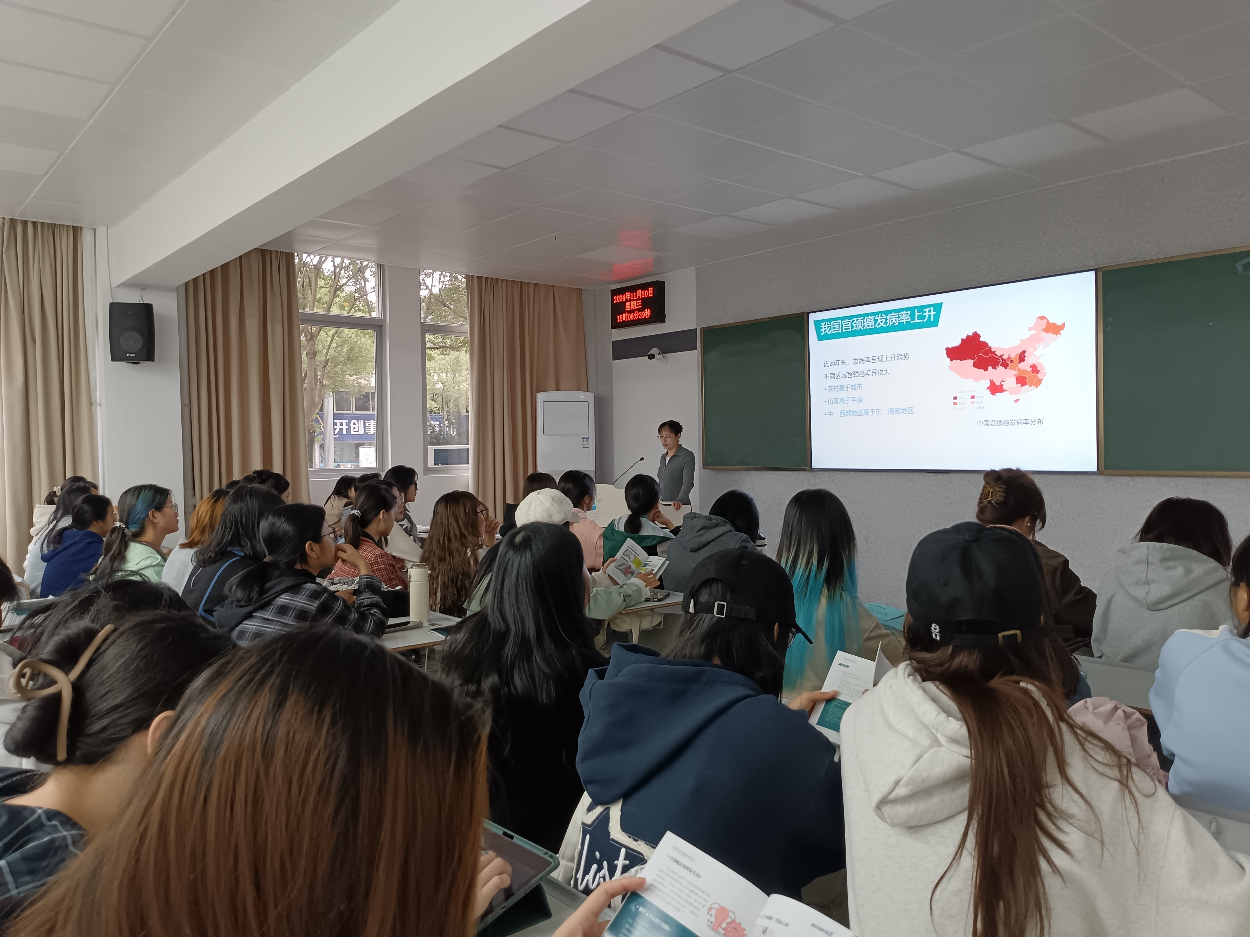 为了积极响应世界卫生组织(WHO)发布的《加速消除宫颈癌全球战略》,关爱女性健康,增强大学生的健康观念,20日下午我校后勤管理处校医院邀请三明市妇幼保健院高金华主任到校为师生开展HPV病毒知识讲座。本次讲座在博学楼举行,共100名女生参加。