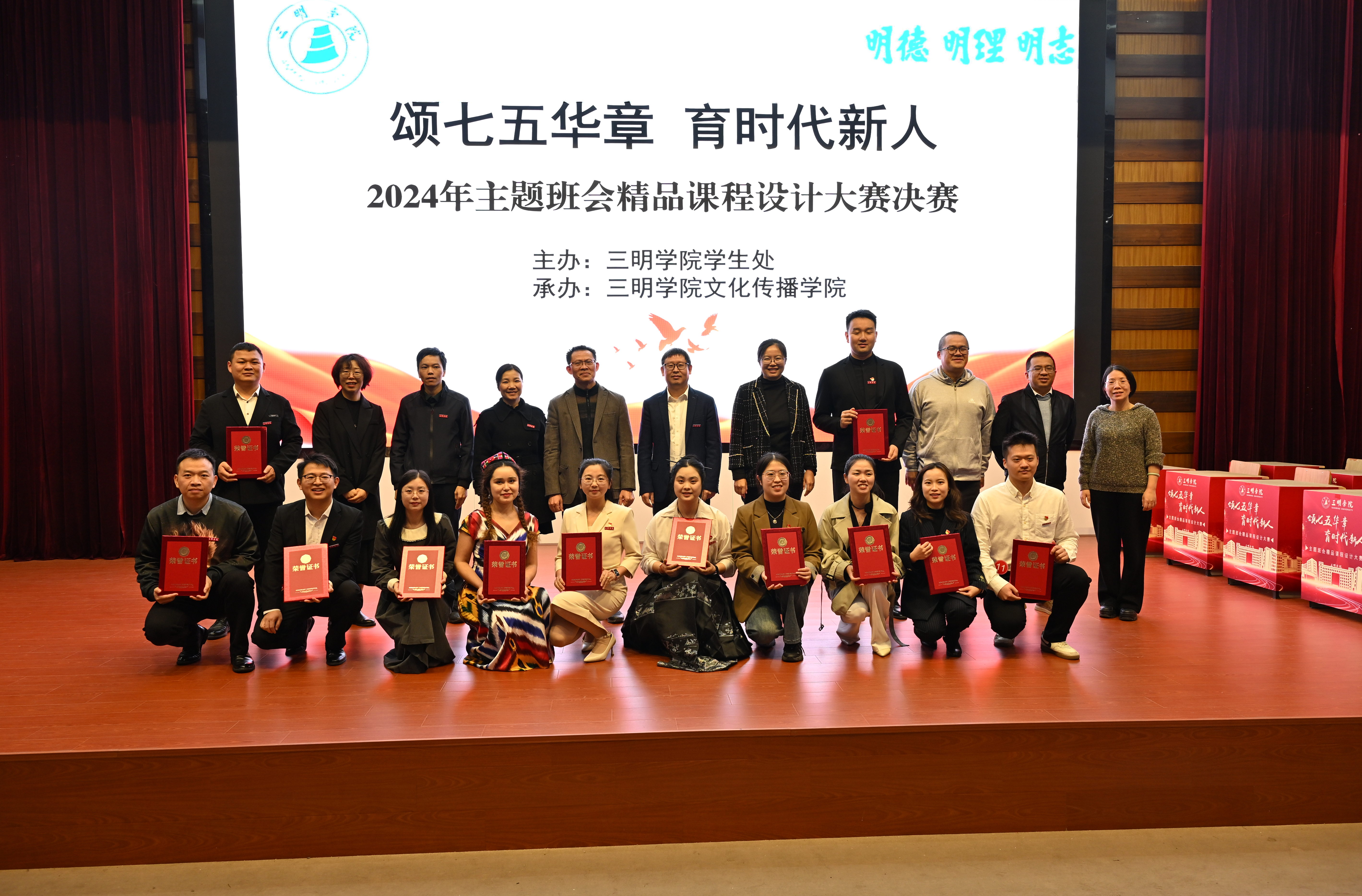 11月27日下午,三明学院“颂七五华章,育时代新人”2024年主题班会精品课程设计大赛决赛在行政楼附楼学术报告厅举办。校党委组织部、学生处、校团委以及各二级学院党委副书记参加活动并担任教师评审团成员,各学院学生代表组成“百人临时班级”参加评审,全体辅导员到场观摩。