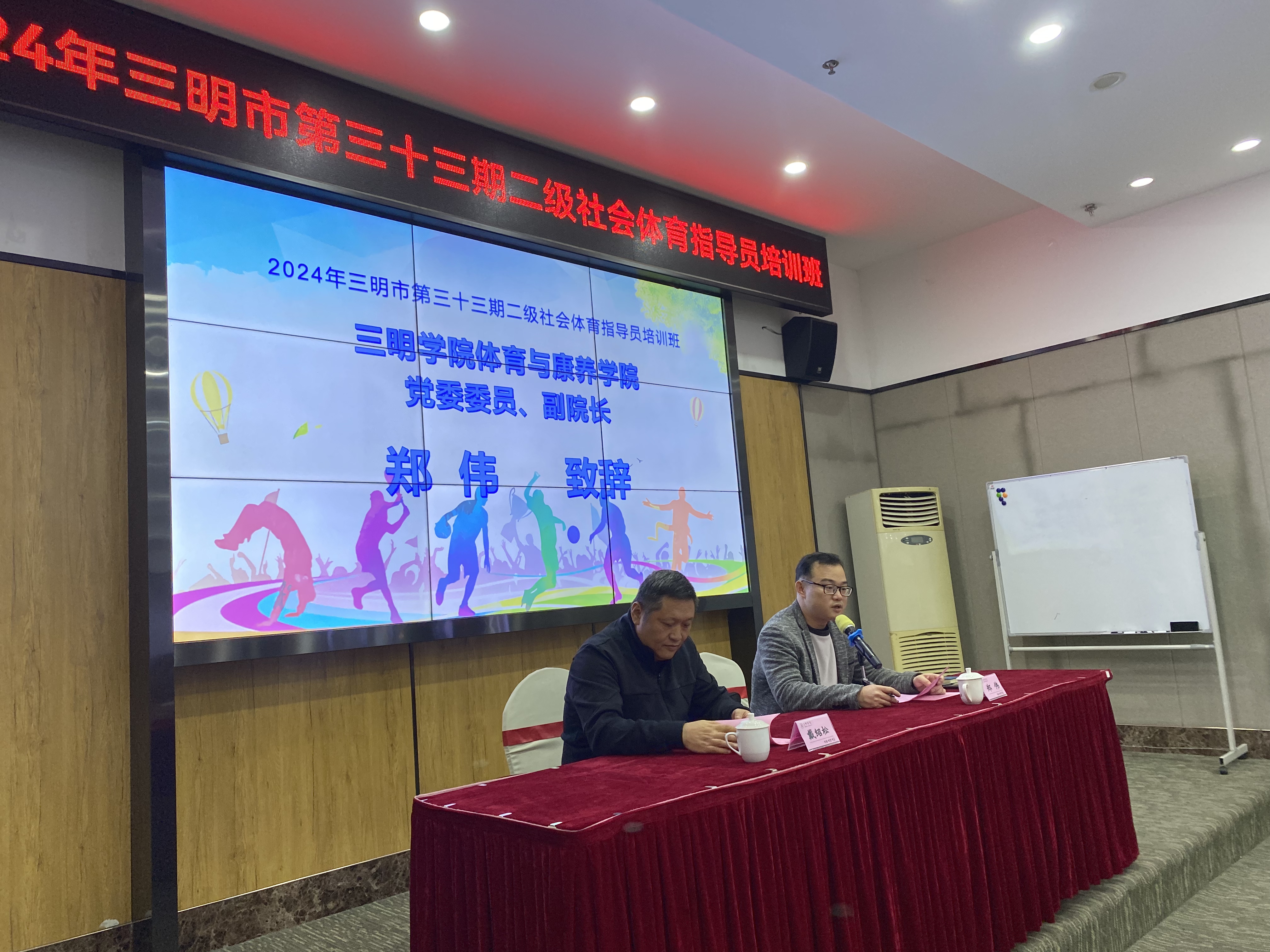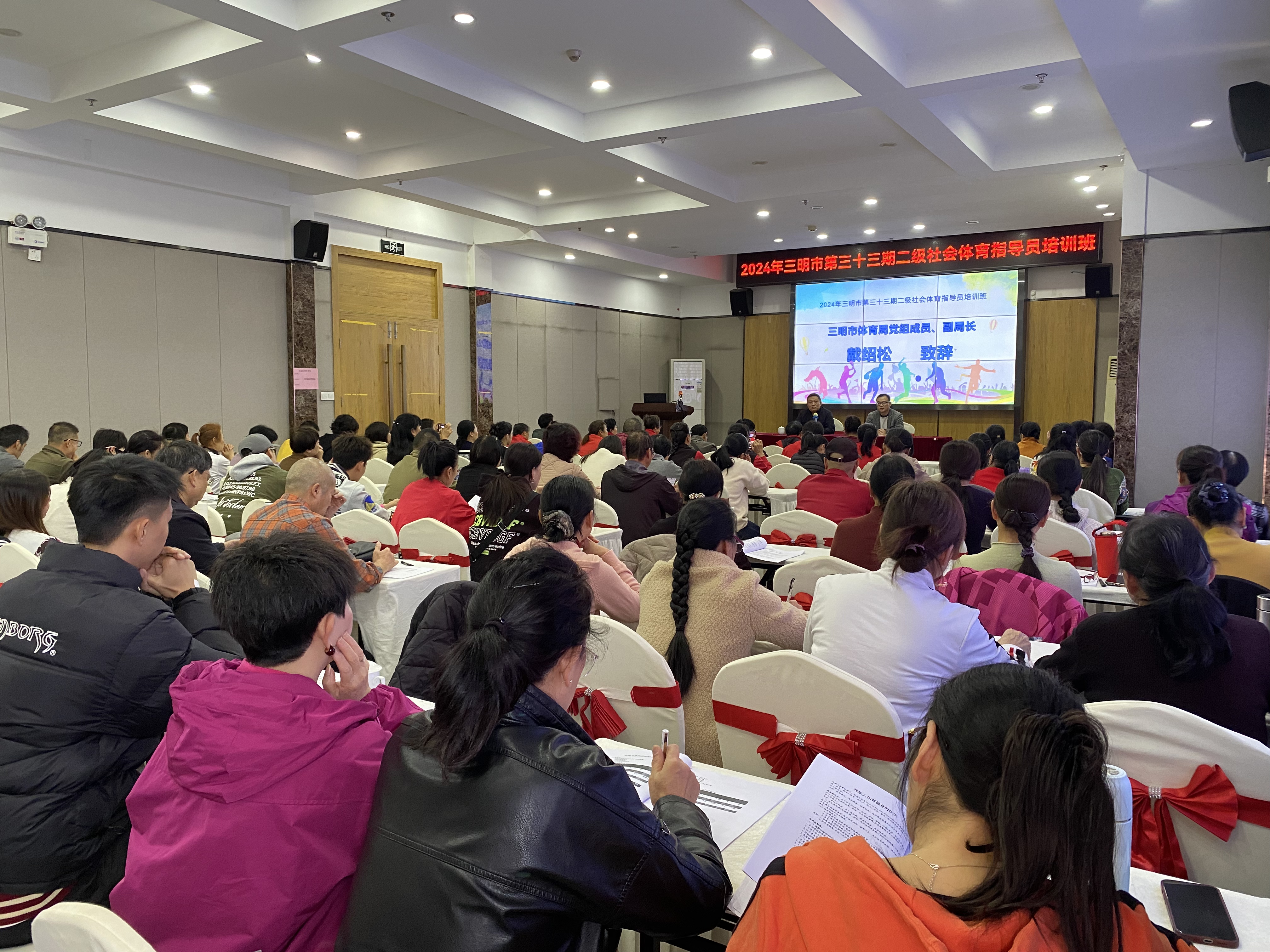 11月27日下午,三明市第三十三期二级社会体育指导员培训开班式顺利举行,三明市体育局党组成员、副局长戴绍松和三明学院体育与康养学院副院长郑伟教授出席开班式,来自三元区、永安、建宁、清流、明溪、尤溪、大田、宁化、将乐、沙县等县区的近百位学员参加本次培训。