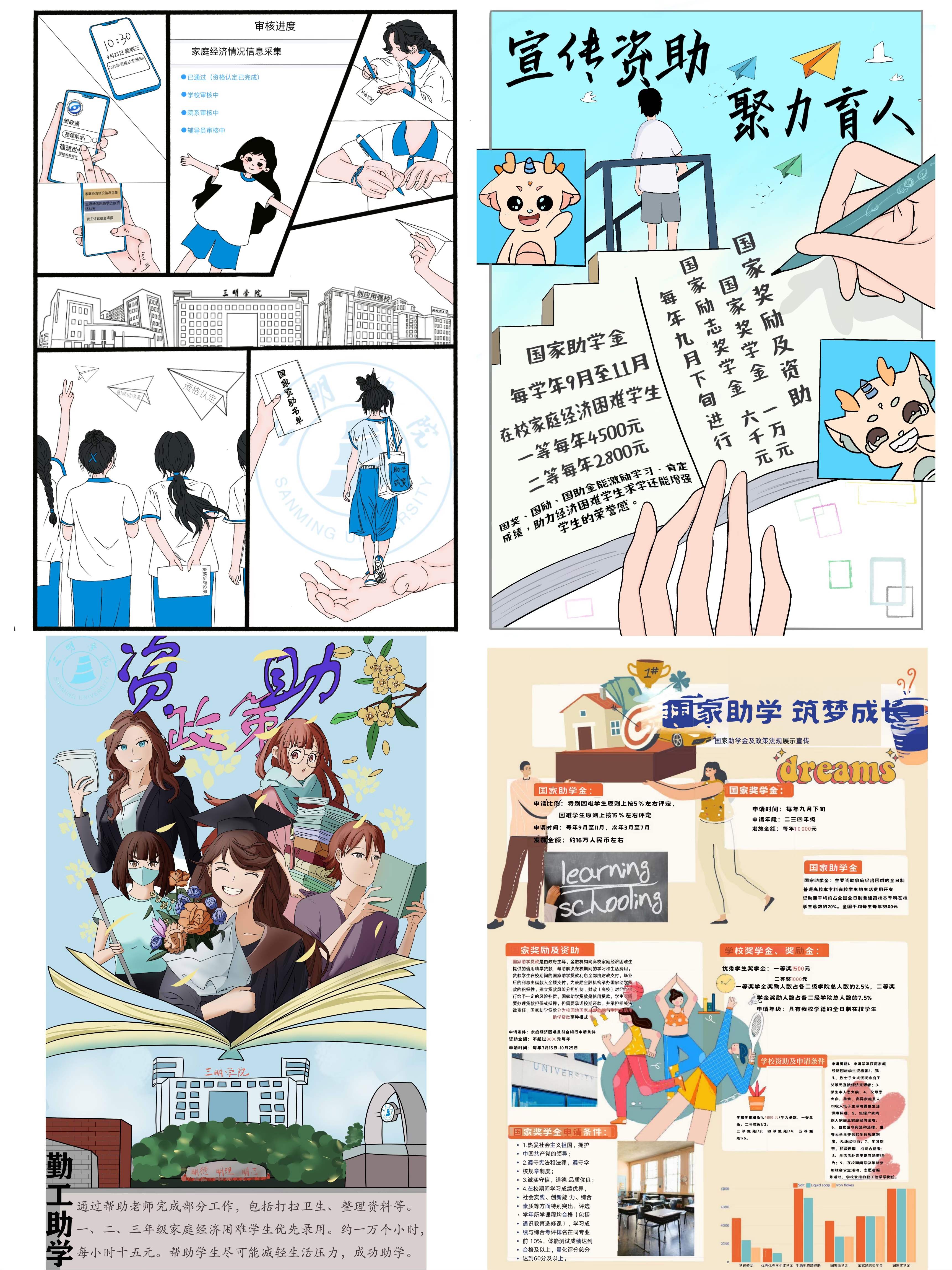 活动前期,学院召开国家资助政策宣讲会,帮助同学们深入了解国家资助政策。宣讲会后,同学们发挥自身的艺术专业特长,将一行行政策文字转化为一幅幅手绘海报、图解漫画......在创作过程中进一步深入理解国家资助政策。2023级美术学专业学生陈心雨说:“绘画创作的过程让我再次对国家资助政策进行了理解,也让我实践了专业技能,让我更加明白了国家资助政策‘助学、筑梦、铸人’的深刻意义。”