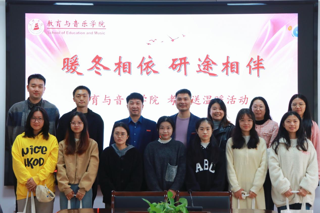 全国硕士研究生招生初试临近,考研人的长征路,踏上了最后一段征程。为鼓舞考研士气,坚定考研信心,传递温暖力量,教育与音乐学院于12月4日在明德楼(一)224精心组织了“暖冬相依,研途相伴”考研送温暖活动,为考研学子送去温情关怀,暖心鼓励。
