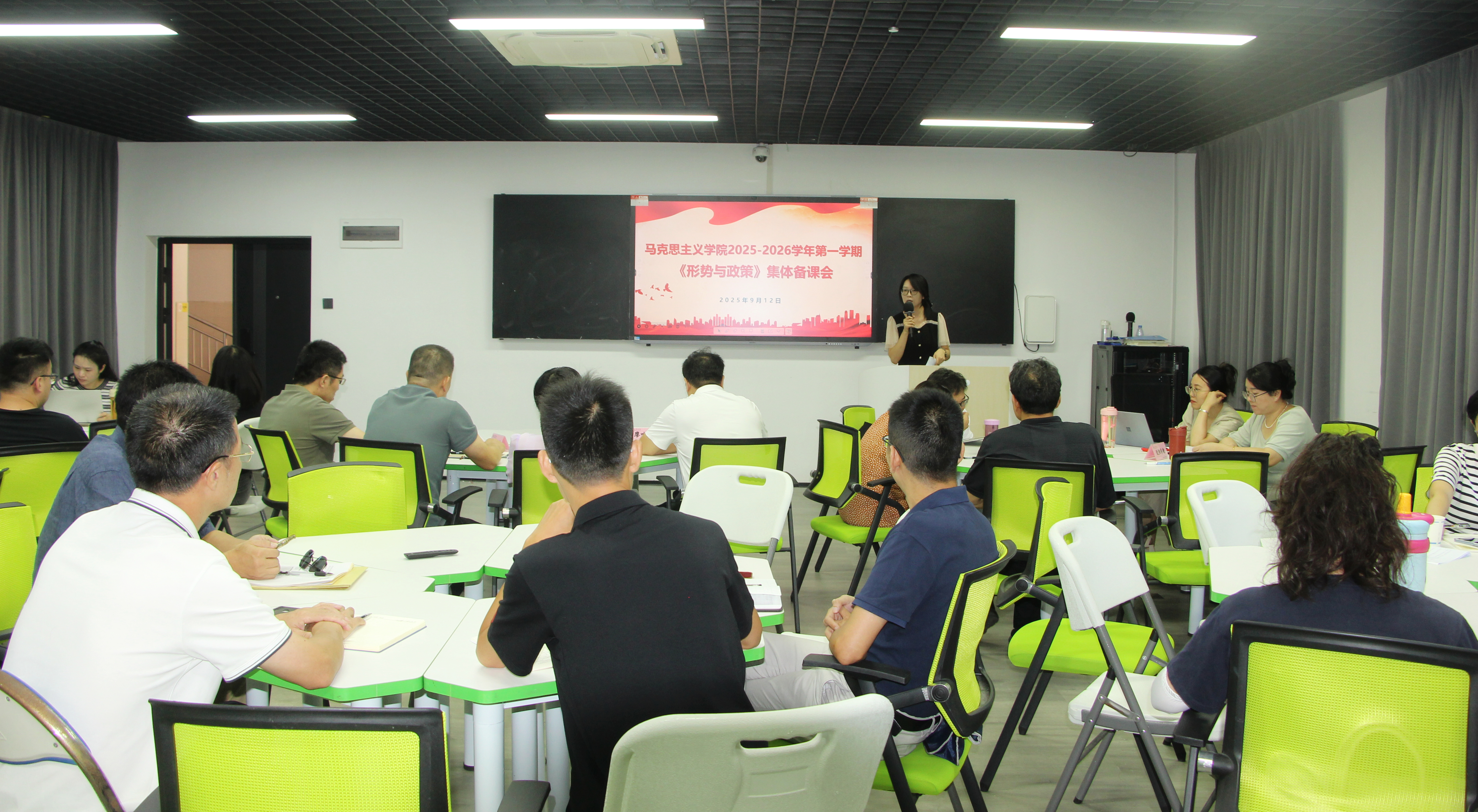 为进一步深化思政课教学改革创新,扎实推进中国式现代化理论进课堂、进头脑,进一步提升形势与政策课程教学质量与实效,9月12日,马克思主义学院在明德楼(二)107智慧教室召开2025年秋季学期形势与政策集体备课会。会议由欧阳秀敏副院长主持,学院全体授课教师参加。