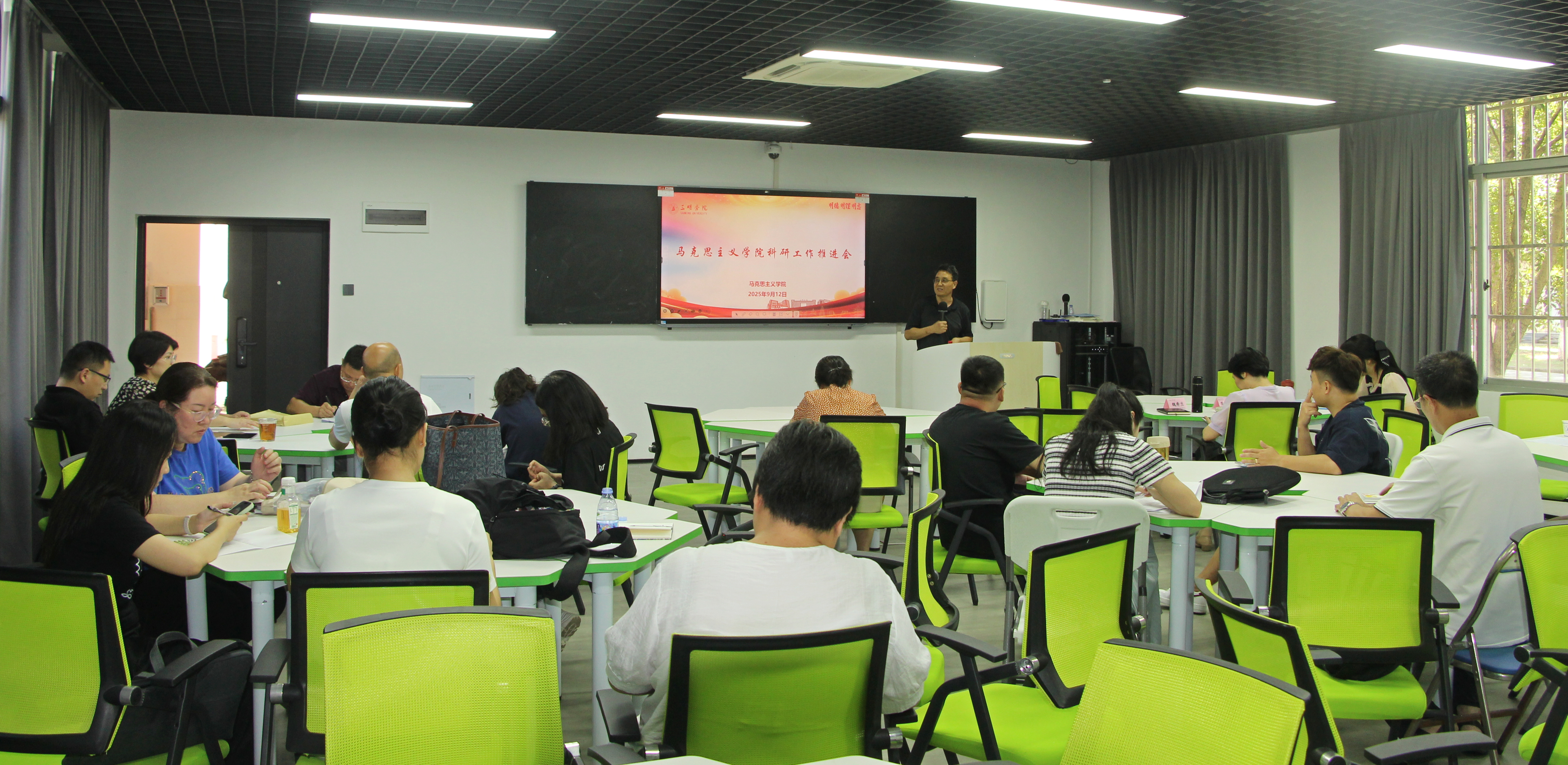 为深入贯彻落实学校关于新学期科研工作的精神,进一步激发学院教师的科研热情,提高科研项目立项率,明确未来科研发展方向,马克思主义学院于9月12日在明德楼二智慧教室召开科研工作推进会。校科技处副处长李军龙、马克思主义学院领导班子、学院博士以及青年教师代表等参会。
