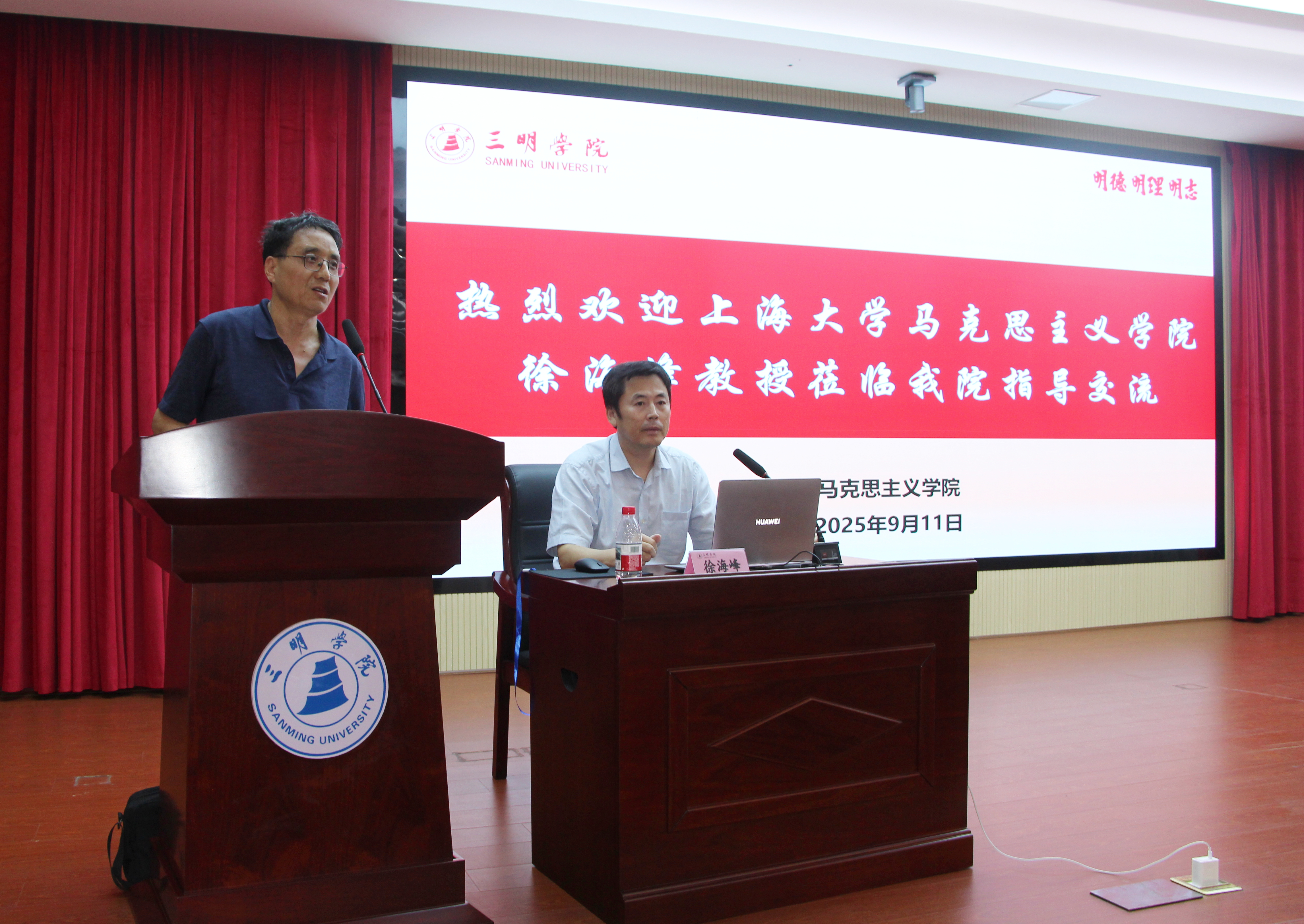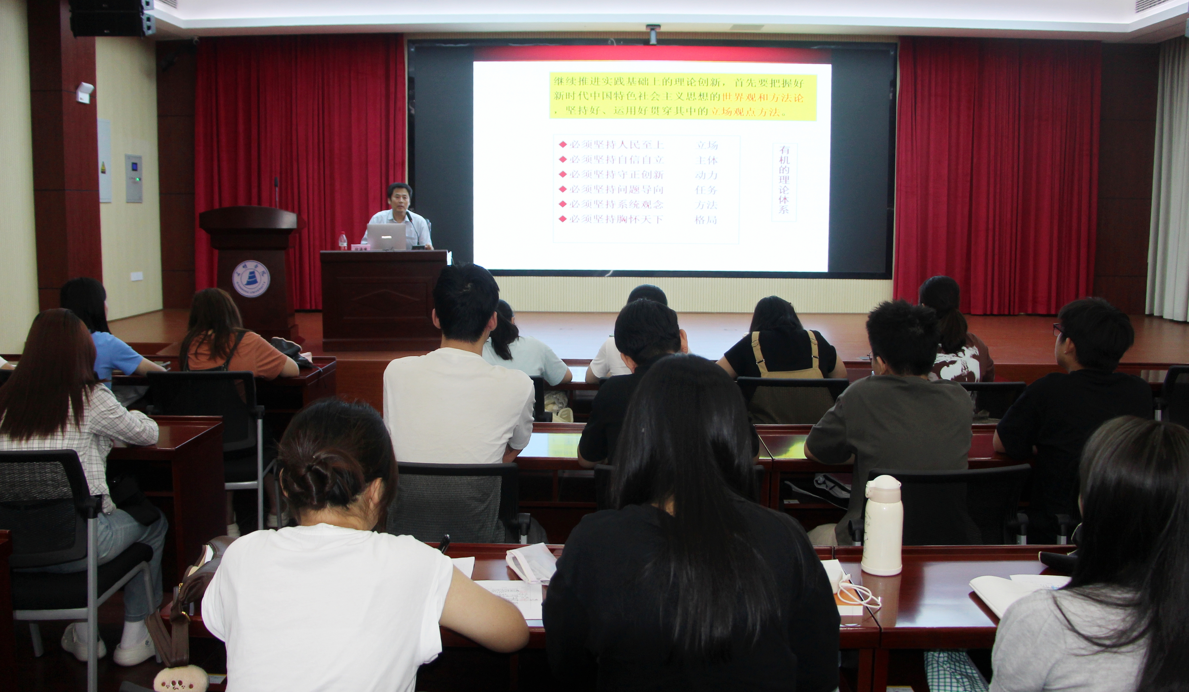 9月11日下午,上海大学马克思主义学院徐海峰教授应邀到马克思主义学院作题为“习近平新时代中国特色社会主义思想的世界观和方法论”的专题讲座。讲座由学院副院长范连生教授主持,2024级思想政治教育专业学生参加。