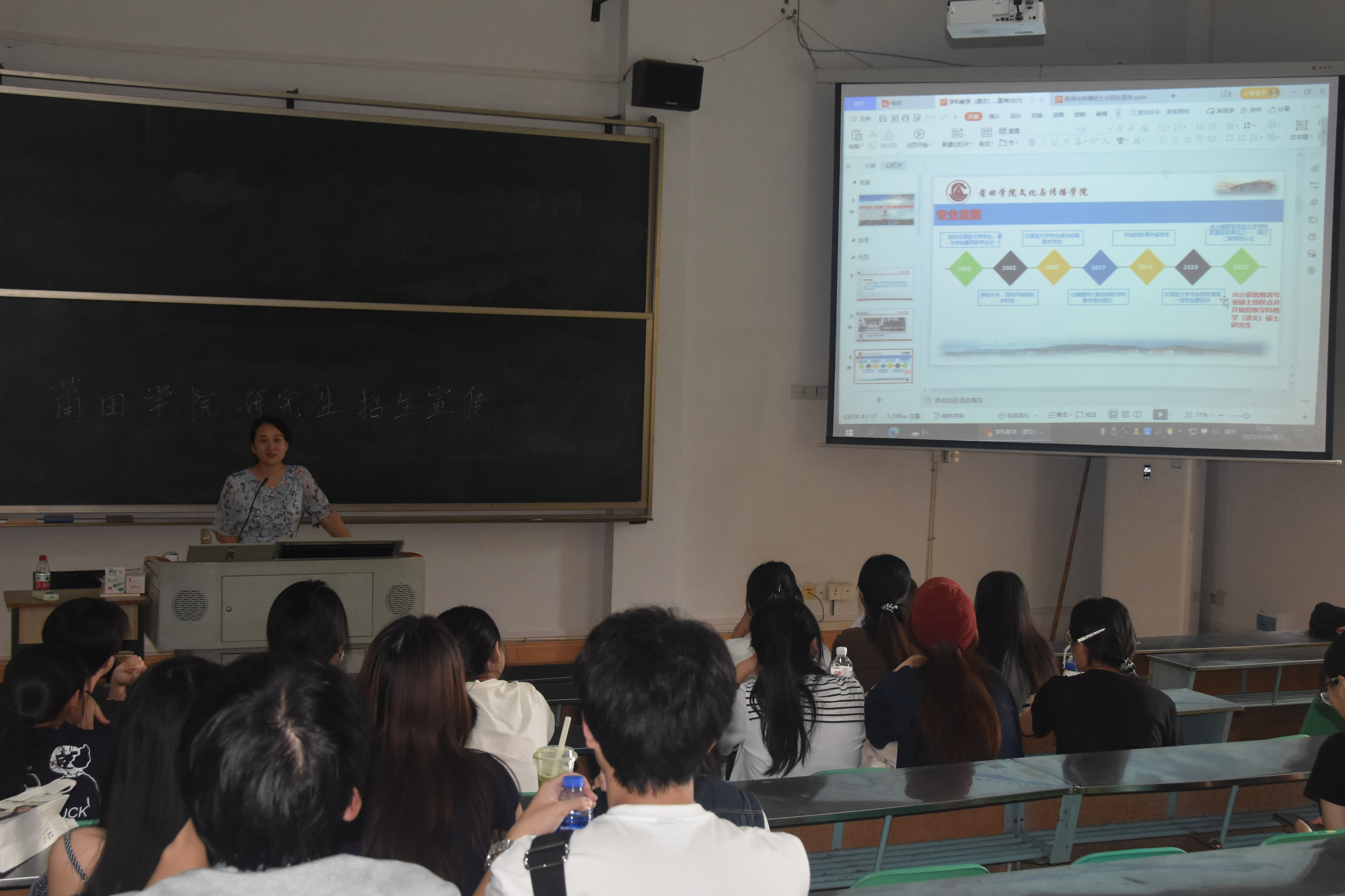 为助力学子明晰学业规划、拓展发展路径,9月24日下午,莆田学院研究生招生宣讲在鸿文楼(二)B302顺利举行。莆田学院文化与传播学院科研办主任刘志、汉语言文学专业副教授林毓莎担任主讲。
