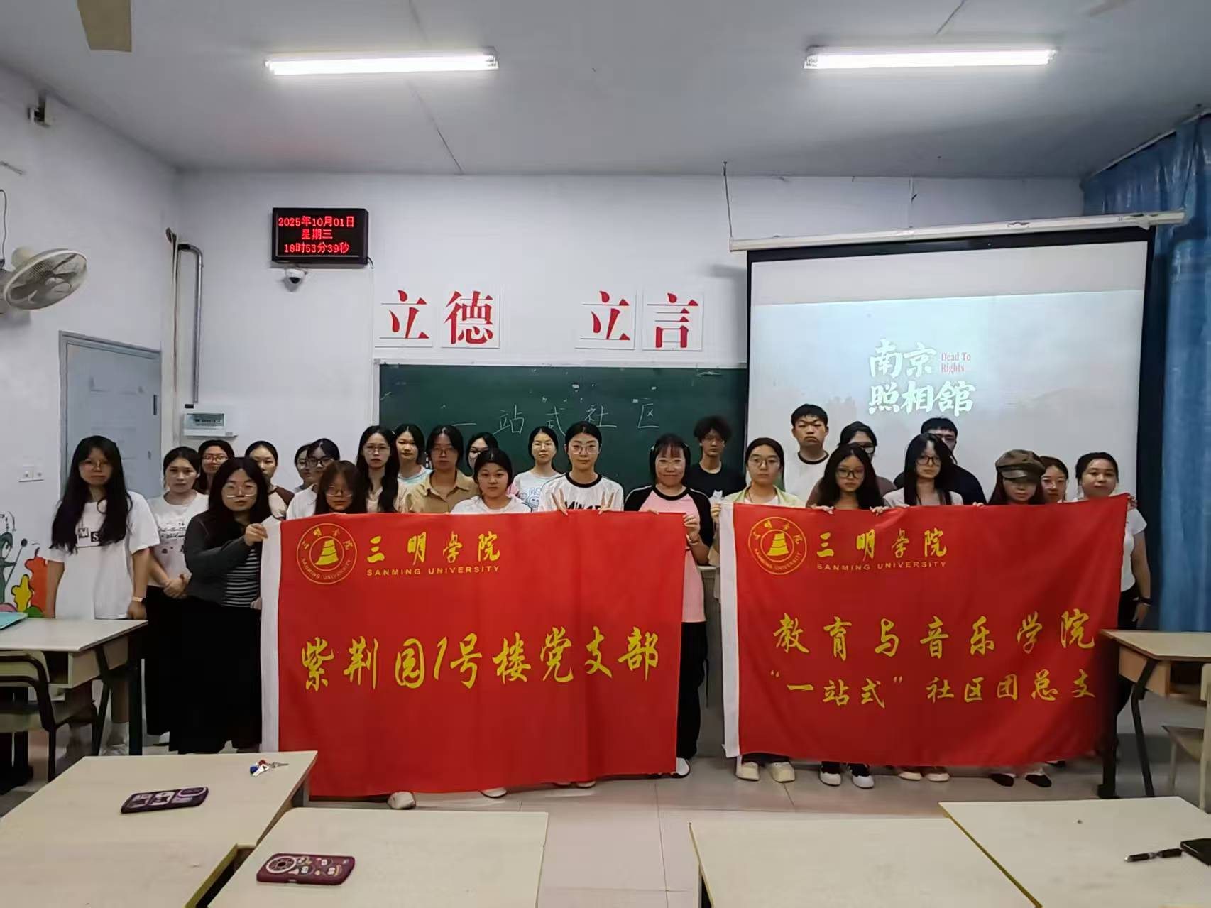 10月1日晚,教育与音乐学院“一站式”社区团总支联合紫荆园1号楼党支部,在明德楼(一)举办“盛世光影间,双节情相连”主题观影活动,组织在校师生共同观看影片《南京照相馆》。