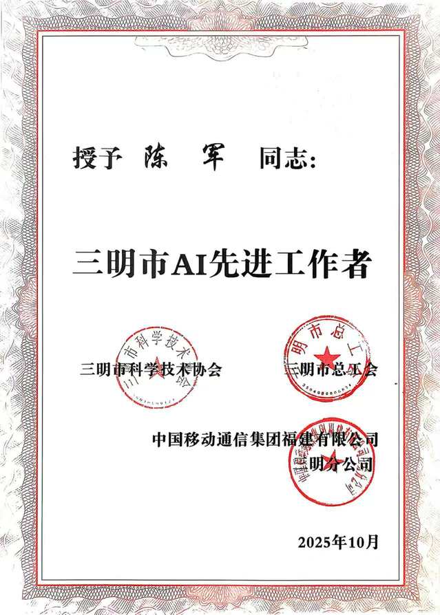本次大赛由三明市科学技术协会、三明市总工会及中国移动通信集团福建有限公司三明分公司联合主办,以数智三明,AI应用创享未来为主题。比赛中,跨境电商团队围绕跨境电商领域的实际问题,开发出具有创新性和实用价值的AI应用解决方案。决赛现场,团队通过清晰的演讲与答辩,向评委充分展示了作品的技术路径与应用前景,并获得认可。