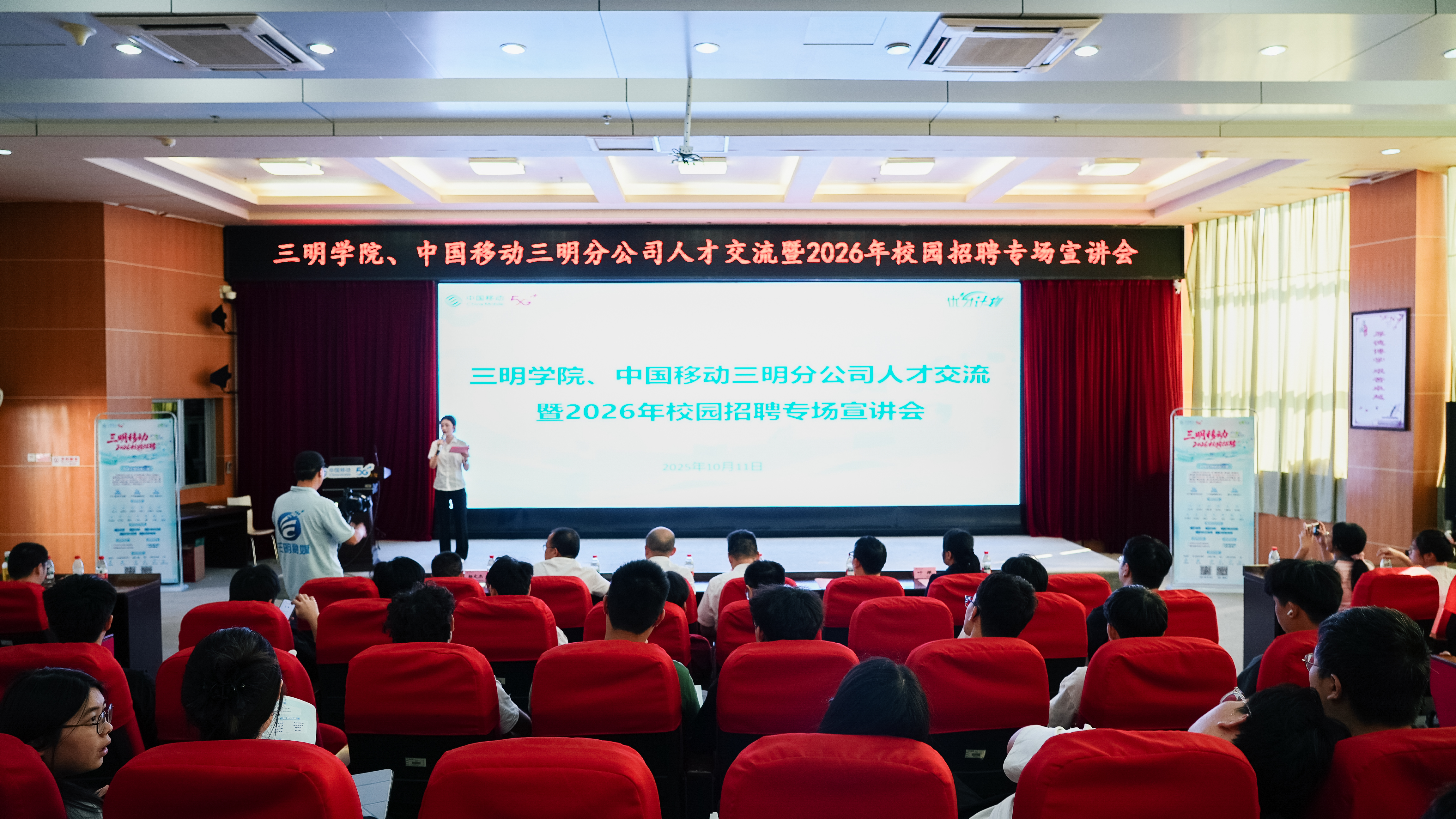 10月11日下午,三明学院联合三明移动举办校园招聘专场宣讲会,吸引近200名毕业生到场参与,现场互动氛围热烈。