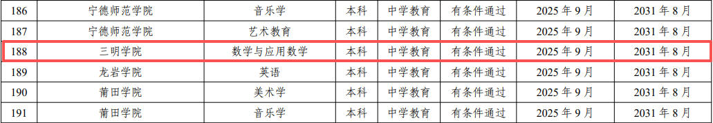 近日,教育部发布了《教育部办公厅关于公布2025年通过普通高等学校师范类专业认证专业名单及中期审核专业名单的通知》(教师厅函〔2025〕18号),我校数学与应用数学专业通过师范类专业第二级认证,认证结论有效期六年,自2025年9月起至2031年8月止。同时,体育教育、小学教育、汉语言文学3个专业通过中期审核,继续保持原认证有效期至2028年6月。截至目前,我校现有的11个师范专业中,已有8个专业通过了师范类专业第二级认证(其中3个专业通过中期审核)。此外,物理学、化学、思想政治教育3个师范类专业的认证自评自建工作正有序推进。