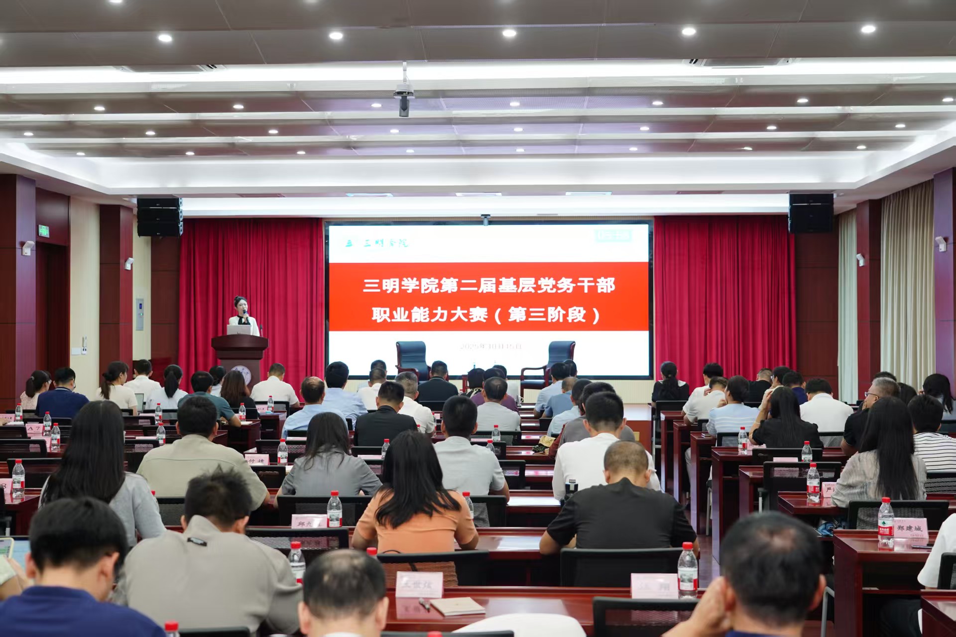 10月15日,三明学院第二届基层党务干部职业能力大赛决赛落下帷幕。校党委副书记廖景榕、李莉星,各二级学院党委书记、副书记、组织员,基层党支部书记现场观摩比赛。