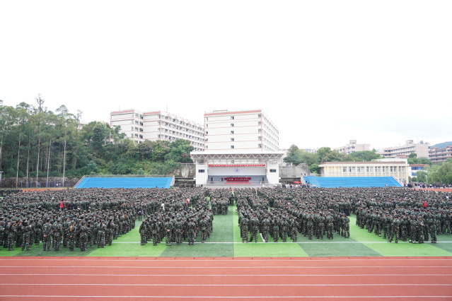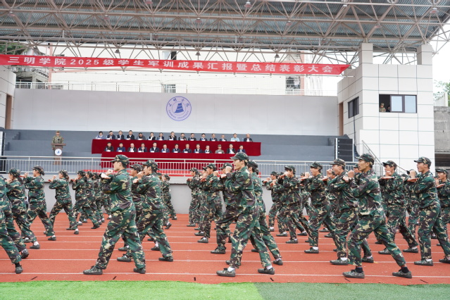 10月22日,我校在南区田径场举行2025级学生军训总结表彰大会。校领导陈列平、张君诚、廖景榕、李莉星、吴龙、林建伟、游龙桂,武警三明支队支队长陶建荣,全体承训教官代表、校军训工作领导小组成员单位负责人、学生辅导员和受训人员参加活动。