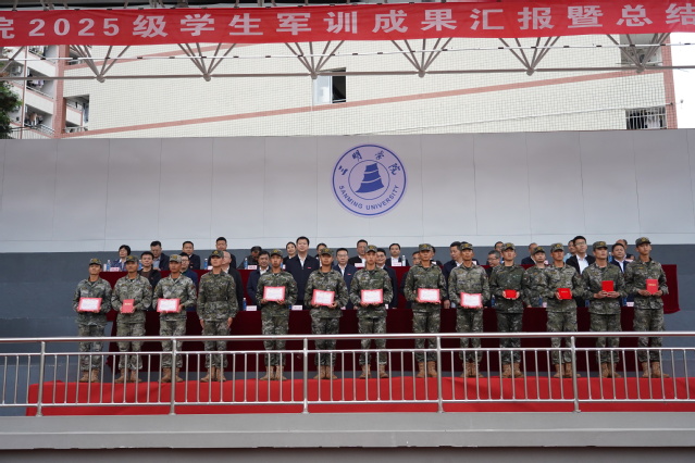 校党委委员、副校长吴龙宣读了《三明学院关于表彰2025级学生军事训练“先进个人”、“优秀教官”和“先进单位”的决定》,与会领导老师为获得“先进个人”、“优秀教官”和“先进单位”等代表颁奖。