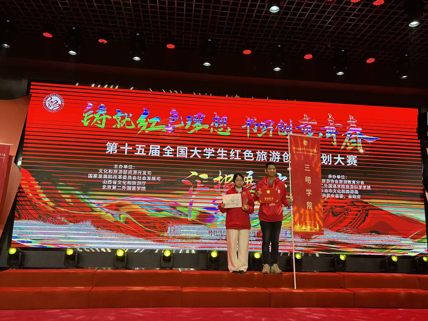 此前,学院为全力备战大赛,组织7名师生于2025年10月17日至21日赴山西武乡开展红色旅游调研;团队将调研获取的红色资源素材与大赛需求深度结合,整合红色旅游线路设计、文化创意传播等关键元素,反复打磨优化参赛作品,最终在全国性赛事中取得优异成绩。