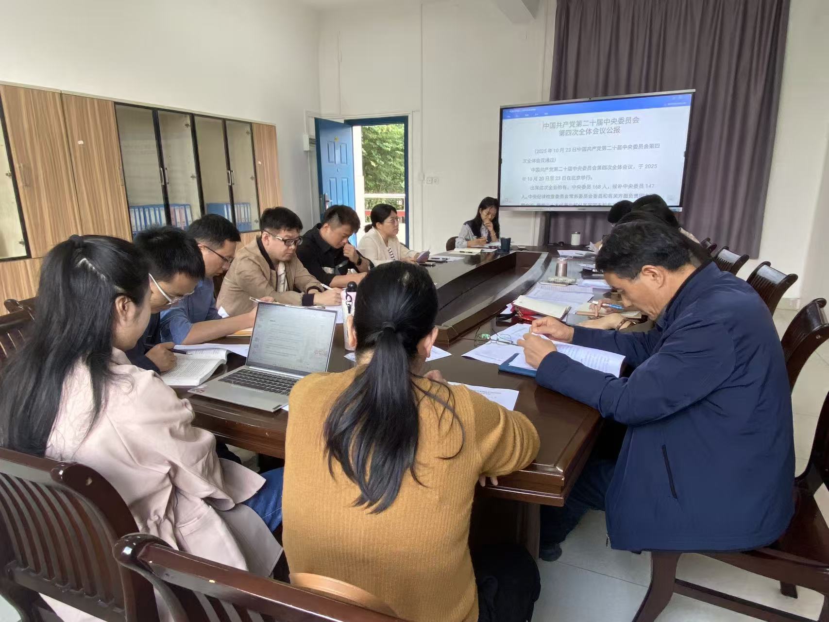 10月27日上午,马克思主义学院召开党委理论学习中心组(扩大)会议,对“党的二十届四中全会精神”进行了集中学习研讨。院领导,各科室、各党支部书记、教研室(系)主任参加了本次学习会。