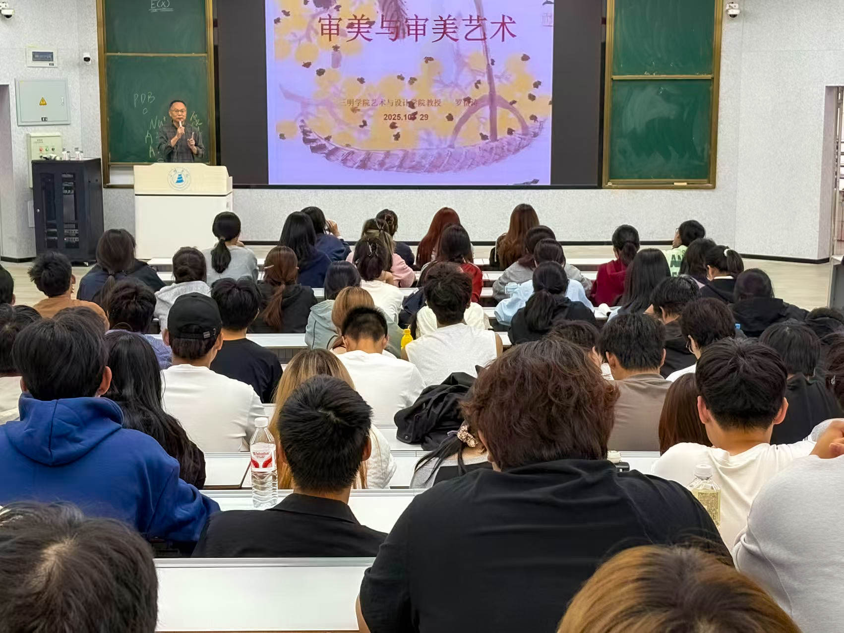 为提升学生审美素养,营造浓厚校园文化氛围,10月29日下午,海峡理工学院在博学楼223教室举办海峡成长论坛,特邀艺术领域资深教授罗奋涛作“审美与审美艺术”专题讲座,学院2025级200余名新生到场聆听。