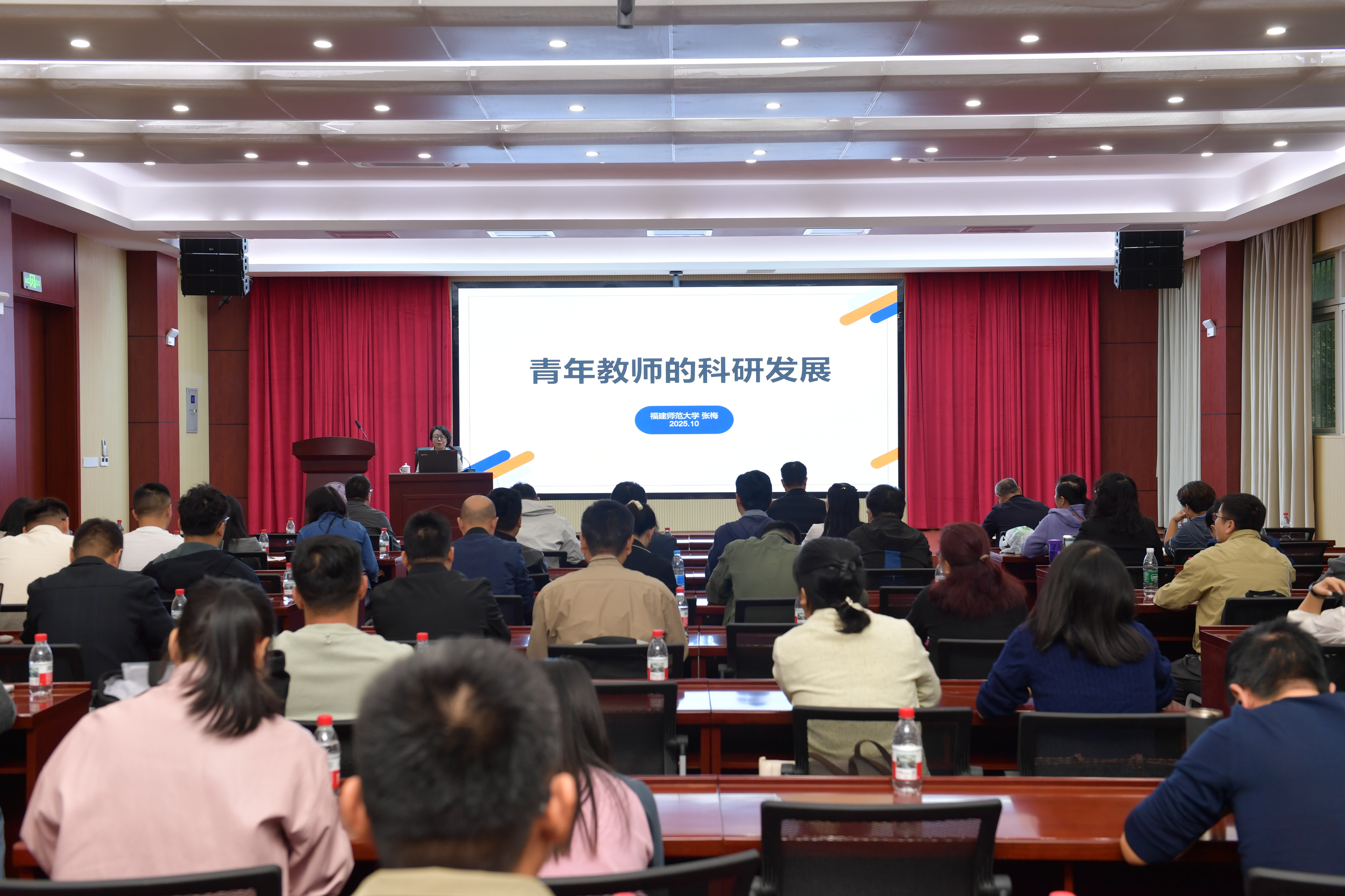 10月22日下午,我校邀请福建师范大学社会科学处处长、博士生导师张梅教授在第三会议室举办“青年教师的科研发展”专题辅导报告,为学校科研工作者带来一场关于国家社科基金项目申报的精准辅导与深度分享。报告会由陈日清副校长主持,各学院科研骨干及青年教师代表近百人参加。