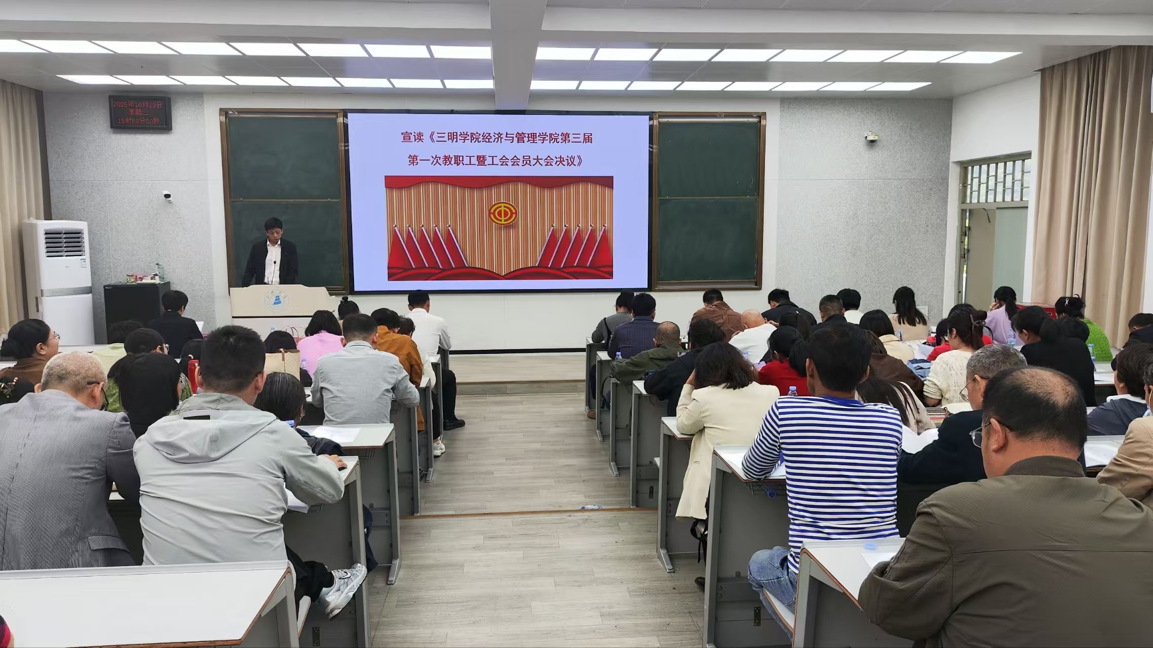 10月29日下午,三明学院经济与管理学院第三届第一次教职工暨工会会员大会换届选举会议在厚德楼204教室举行。