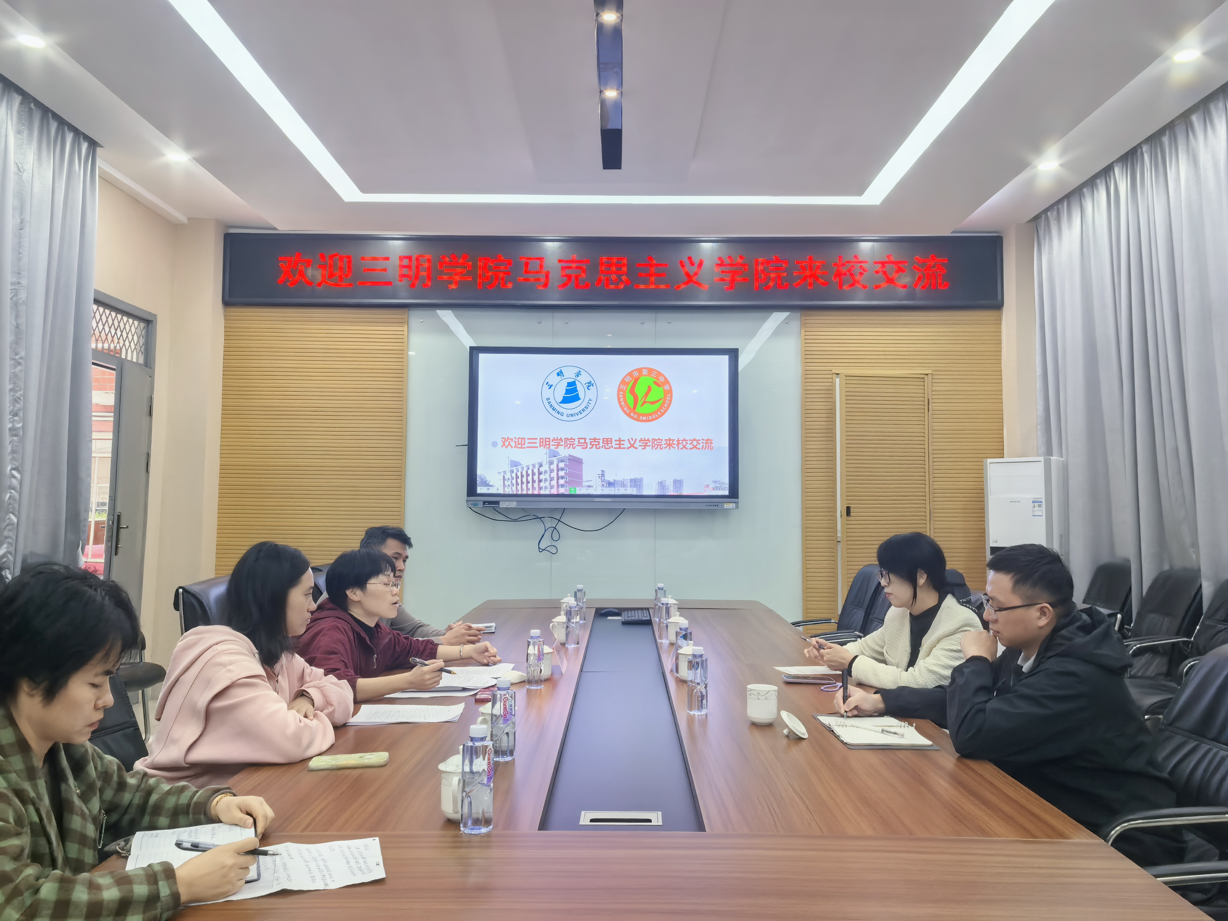 三明三中魏承鋆副校长、吴学勤副校长分别介绍了三明三中的发展情况和大中小学思政课一体化建设情况,并对思政专业实习学生给予了高度评价。欧阳秀敏副院长介绍了学院发展近况,并希望各位实习指导老师能够结合自身丰富的教学经验,从教学设计、教学能力、教学管理等方面为学生发展提供助益。双方还就深化大中小学思政课一体化建设、深化基础教育教研等方面进一步加强合作进行了交流。
