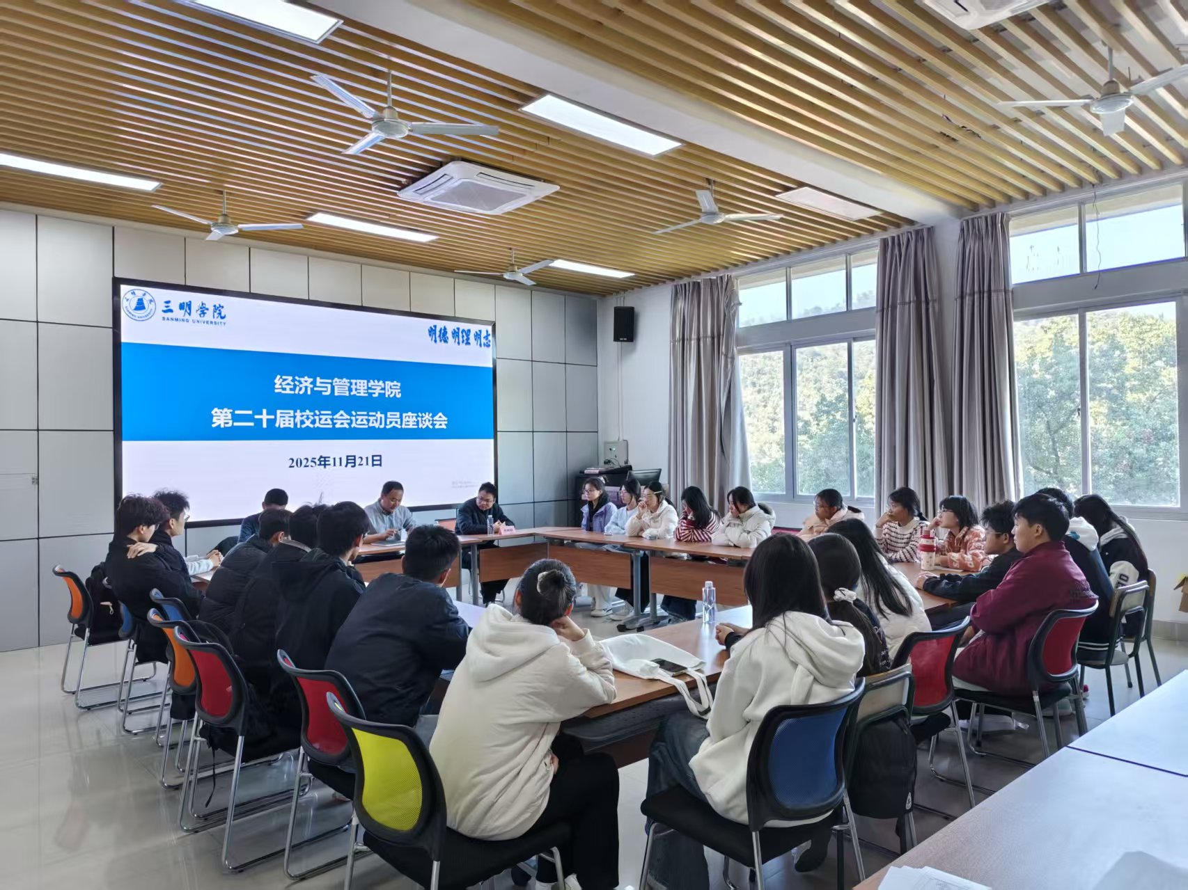 11月21日,经济与管理学院于厚德楼312召开了第二十届校运动会运动员座谈会,学院党委副书记、团委书记以及全体运动员代表参加本次会议,旨在搭建交流平台,促进经验分享与情感联结,校园集体凝聚力。