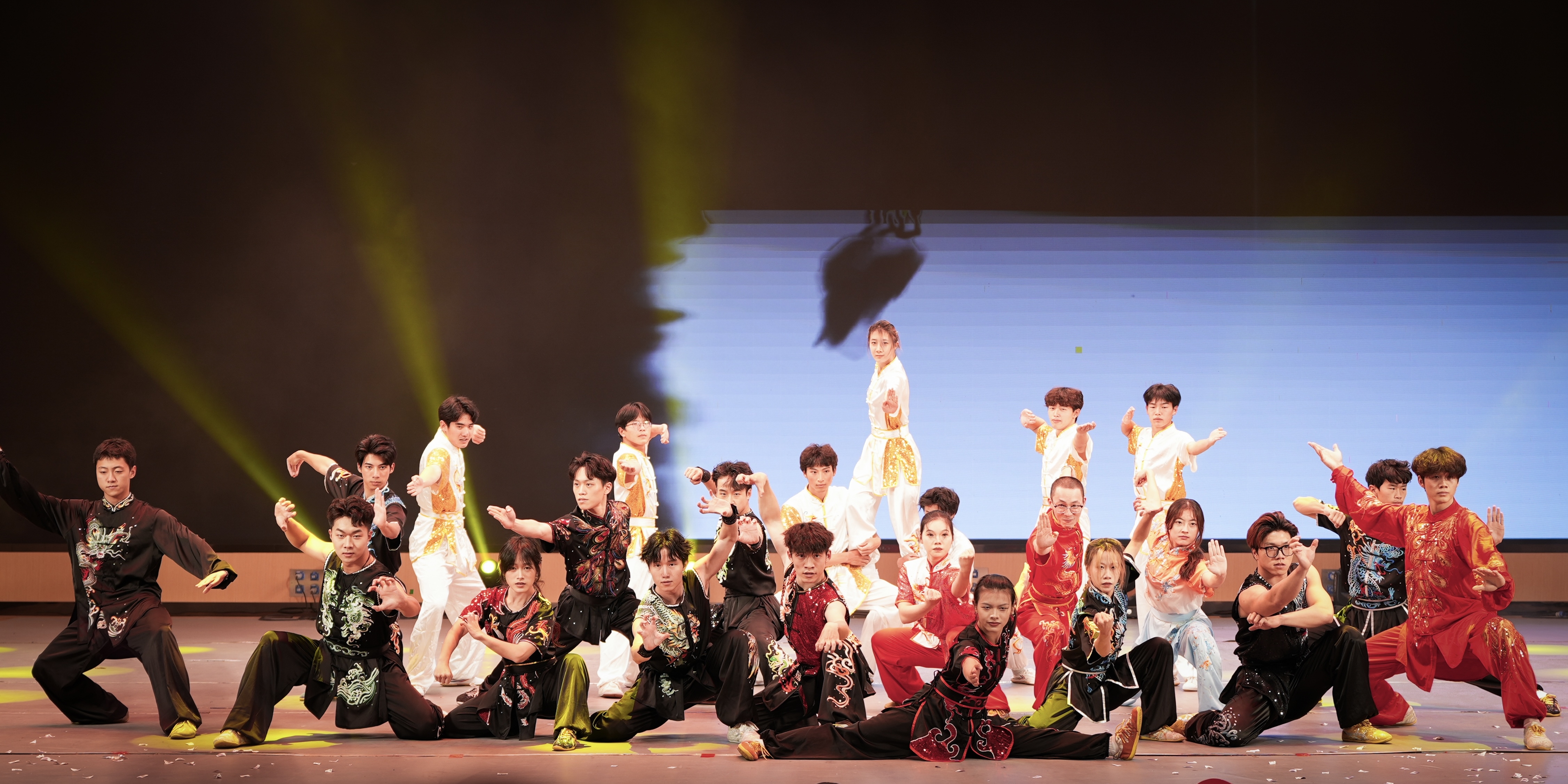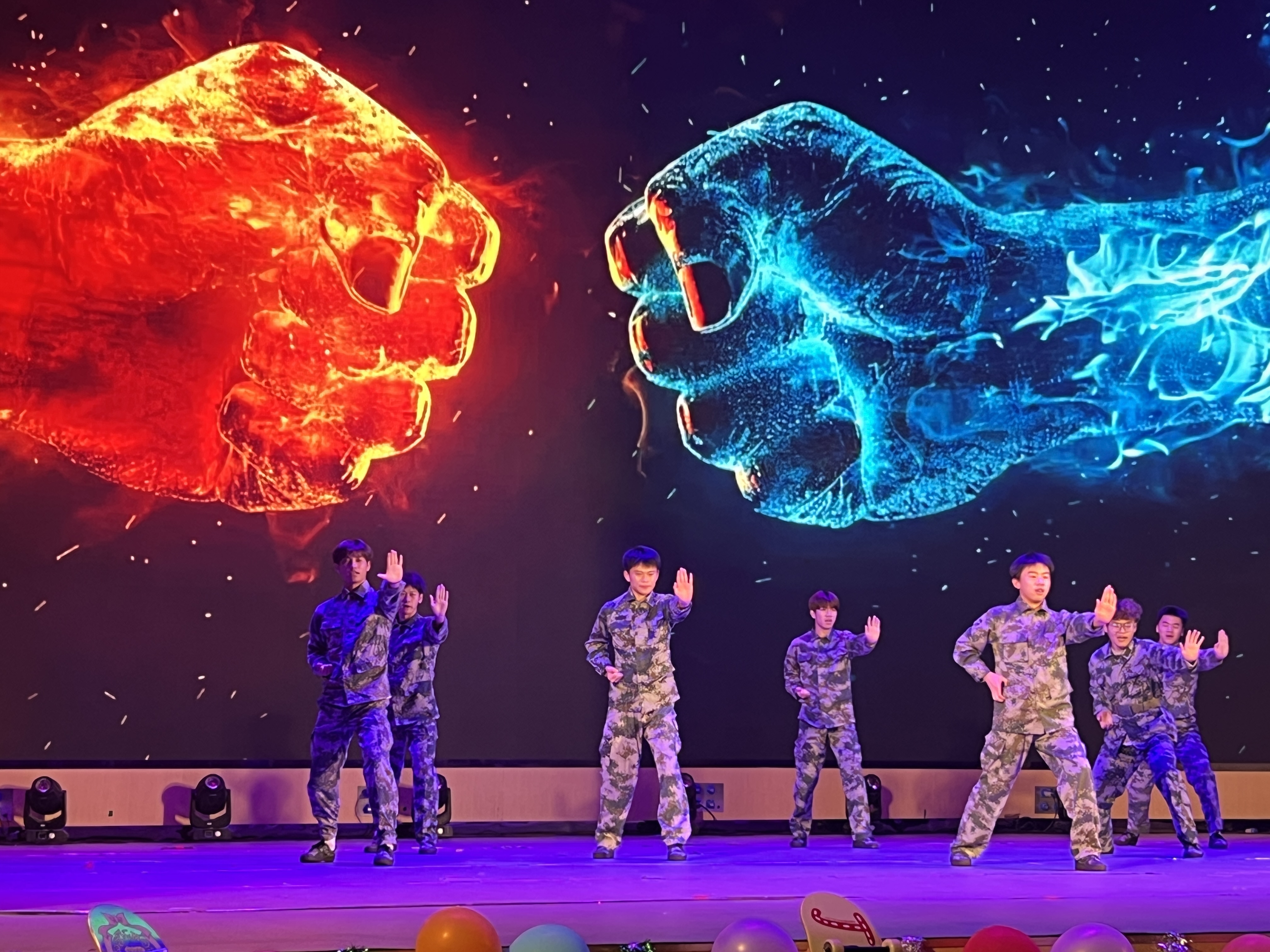 晚会以“八秩薪火・青春启航”“岁月凝情・薪光相传”“逐梦新程・续写华章”三大篇章徐徐展开,节目精彩纷呈、亮点十足。龙狮《龙腾盛世》中,龙狮翻腾跳跃,表演者们默契配合,每一个腾挪转身都引得现场掌声雷动。军体拳的刚劲利落、魔术《眼见为虚》的奇幻莫测让观众目不暇接,武术表演《武行天下》招式精湛、气势如虹,尽显中华武术的博大精深。