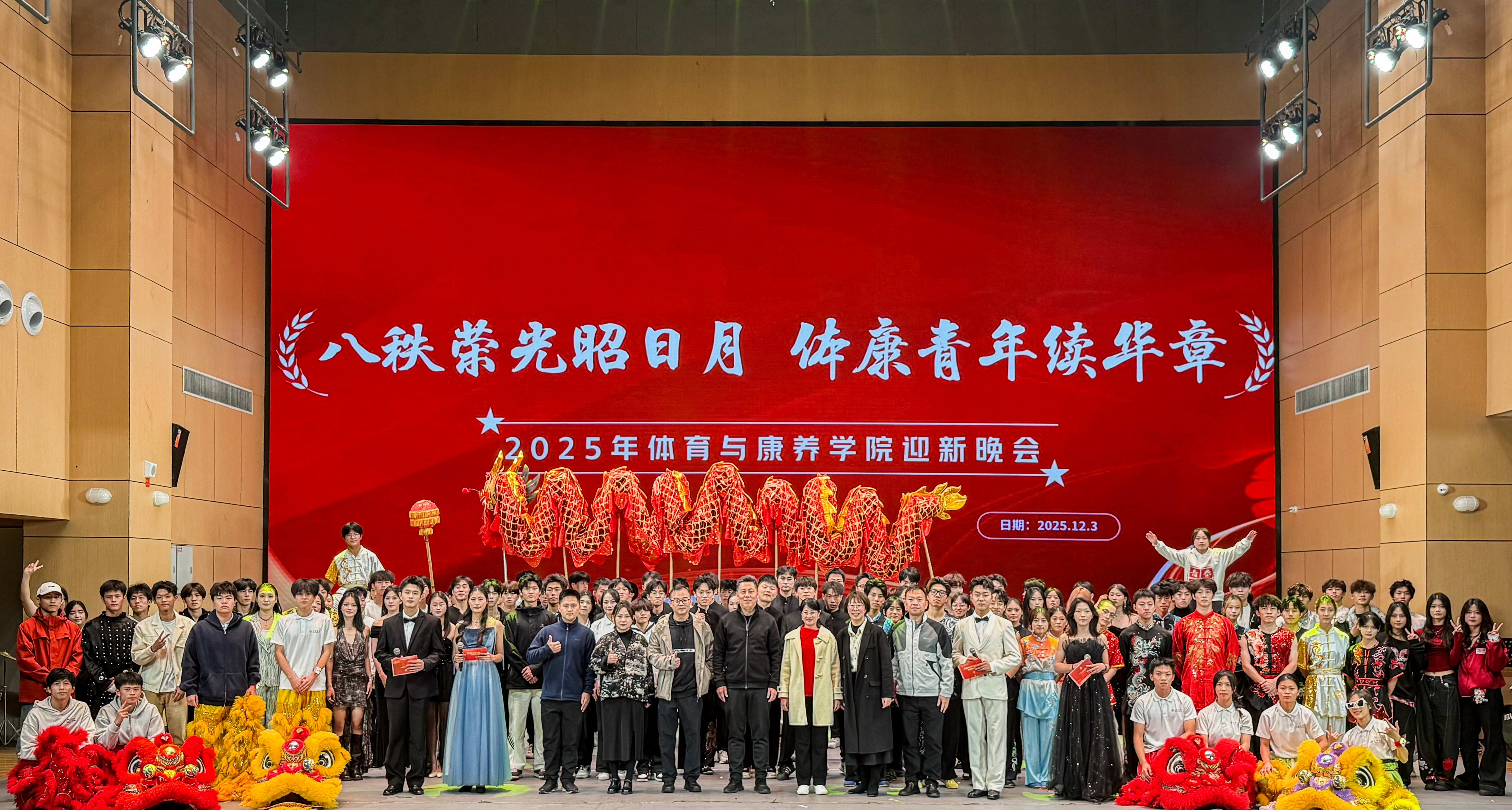 12月3日,体育与康养学院“八秩荣光昭日月 体康青年续华章”迎新晚会在北区艺术楼演艺厅顺利举行。校党委副书记李莉星出席晚会,校团委、各二级学院团学师生代表及体育与康养学院师生近500人齐聚一堂,共迎新生、共话传承。