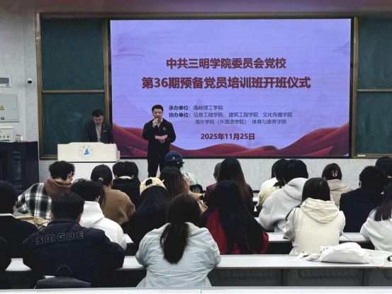 为深入学习贯彻习近平新时代中国特色社会主义思想,全面落实党的二十届四中全会精神,培养政治合格、堪当民族复兴重任的时代新人,2025年11月25日至12月3日,由海峡理工学院承办的三明学院党校第36期预备党员培训班顺利举行并圆满结束。本期培训班共有来自信息工程学院、建筑工程学院、文化传播学院、海峡理工学院、海外学院(外国语学院)、体育与康养学院的103名预备党员参加,其中101名学员通过考核,顺利结业。