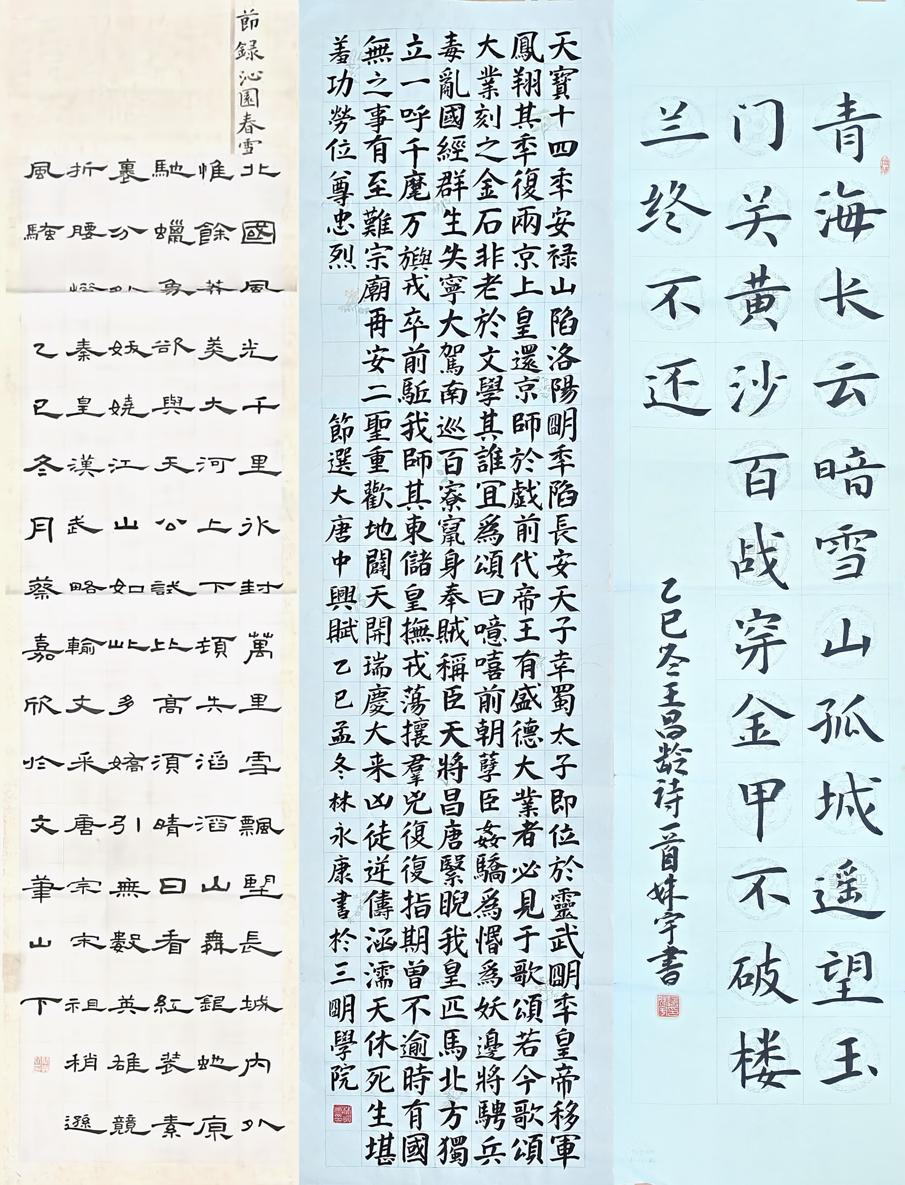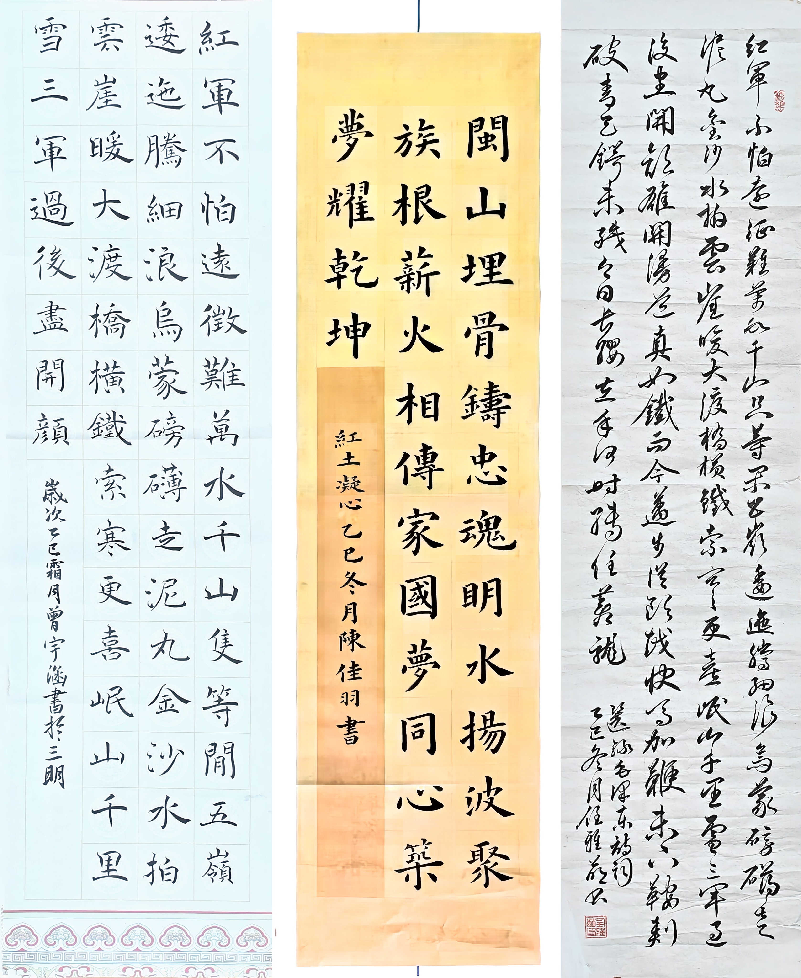 本次大赛创新设置“传统”与“创意”双赛道,参赛者以宣纸、作品纸或素雅扇面为载体,紧扣“红色三明”历史记忆、爱国诗词经典、铸牢中华民族共同体意识等核心主题开展创作。传统赛道上,同学们以楷书、行书、隶书等经典书体为依托,生动呈现红色故事,传递时代精神;创意赛道中,同学们巧妙融合传统书法与现代审美,借助扇面创作、组合式布局等多元形式,让作品兼具艺术张力与时代质感。大家以笔为媒、以墨抒怀,将真挚情感融入每一笔划,尽显深厚文化底蕴与青春风采。
