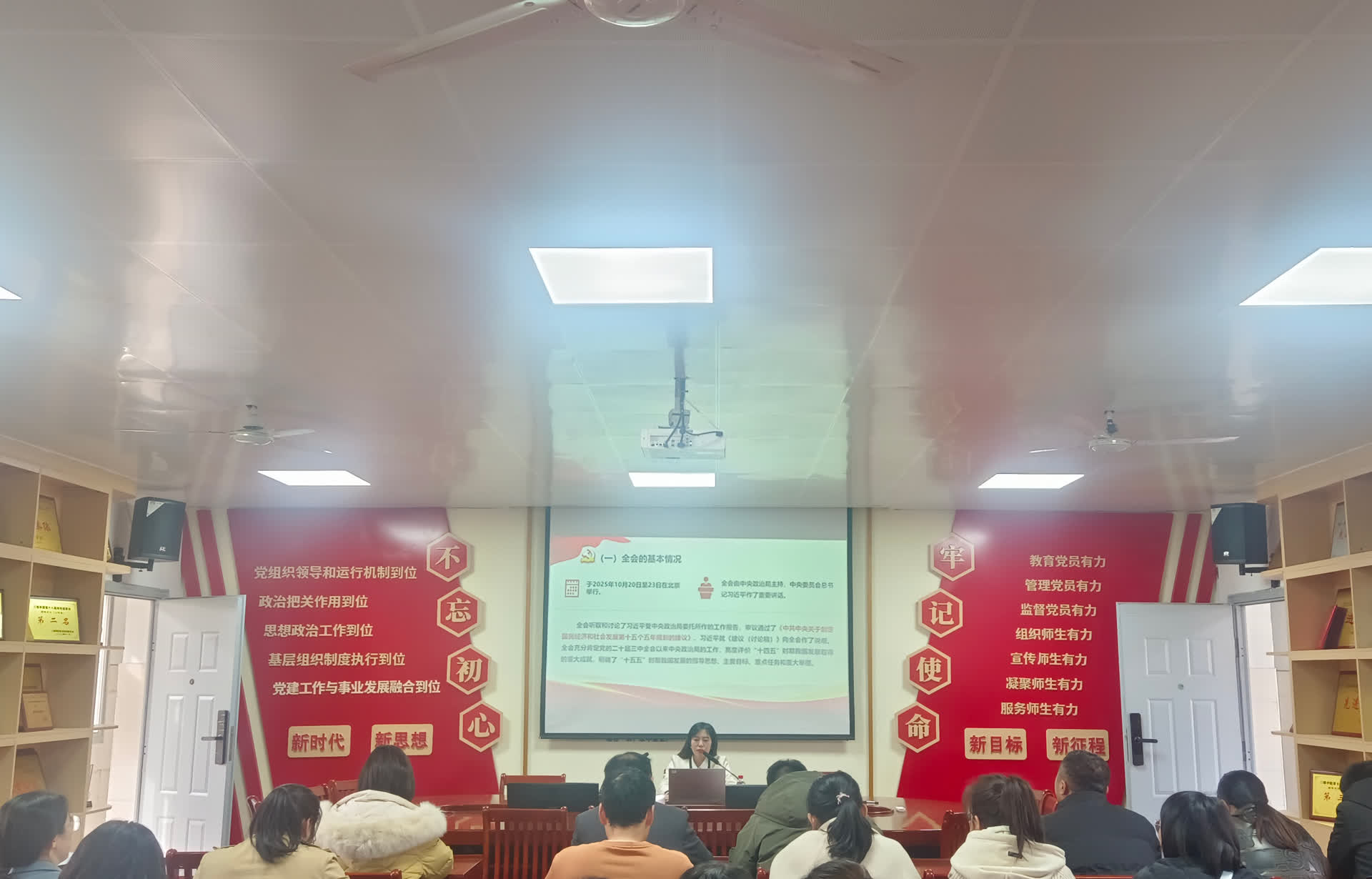 报告结合鲜活案例生动阐释了“十四五”以来国家发展取得的历史性成就,系统梳理了学校教育事业发展的标志性成果。同时,紧扣高等教育改革发展趋势,深入剖析了新形势下地方应用型本科高校转型升级的关键突破点,为党员领导干部明确了努力方向:以“学深悟透”筑牢思想根基,推动全会精神入脑入心;以“对标对表”细化任务清单,推动全会部署落地落细;以“问题导向”破解基层难题,推动全会成效惠及民生;以“党建引领”凝聚工作合力,推动全会精神赋能基层。