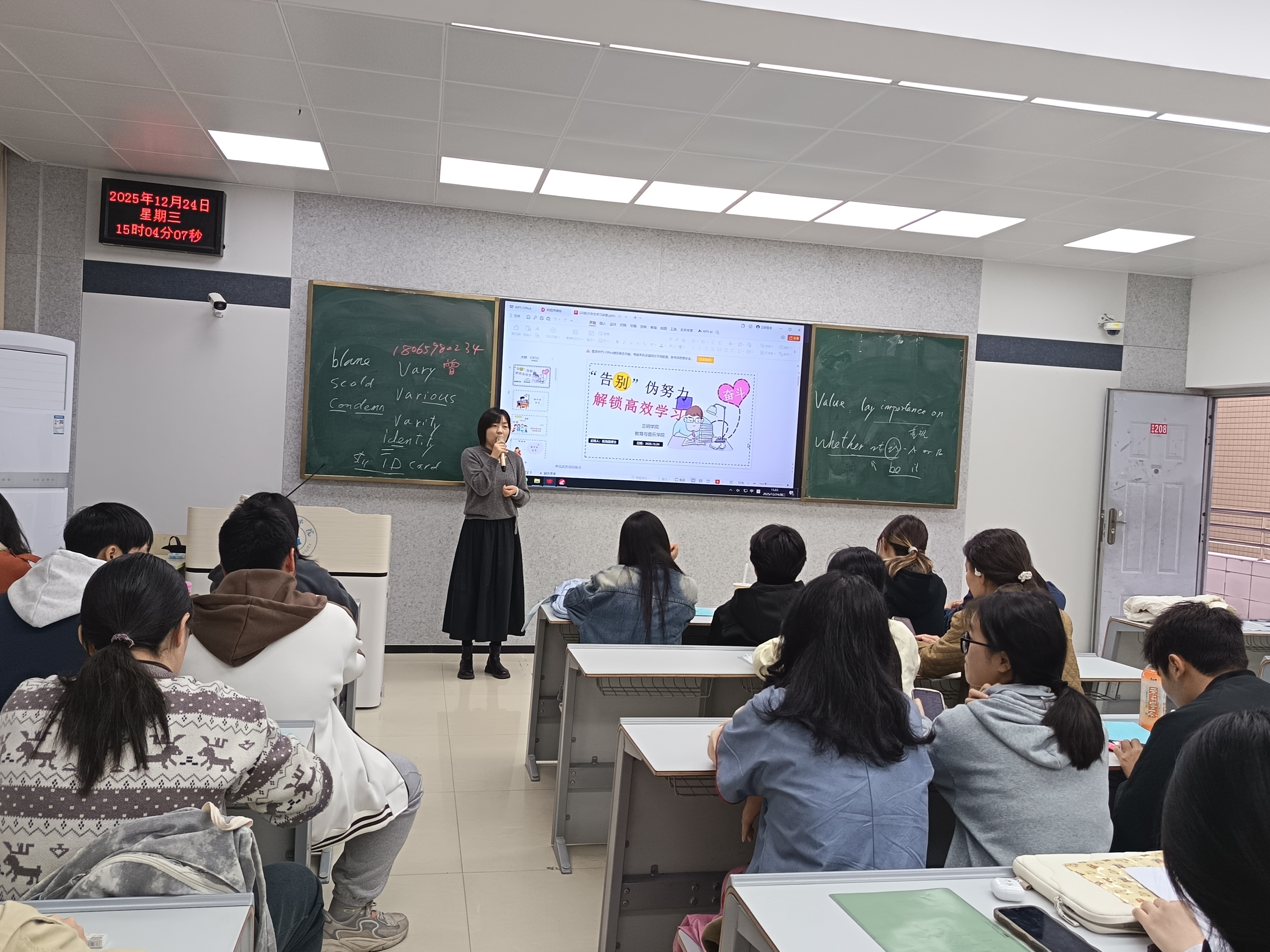 12月24日,教育与音乐学院梁海巍博士应邀为全校学生开展题为“告别伪努力,解锁高效学习”的专题讲座。本次讲座旨在引导学生走出低效学习的误区,提升学习与备考质量,吸引近150名学生积极参与。