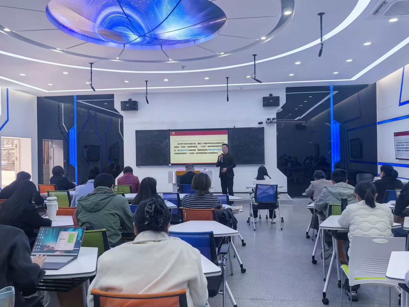 通过此次专题辅导报告,全院教职工和学生党员对党的二十届四中全会精神有了更为深刻的理解和认识。会议强调,当前学院正在编制“十五五”规划,希望全体教职工以此次宣讲为契机,切实把思想和行动统一到党中央决策部署上来,把学习成果转化为编制学院“十五五”规划的生动实践,转化为干事创业的强大动力!大家纷纷表示,将以此次学习为契机,把全会精神转化为推动工作和学习的强大动力,立足本职岗位,努力拼搏奋斗,为学校和学院事业的高质量发展贡献力量。