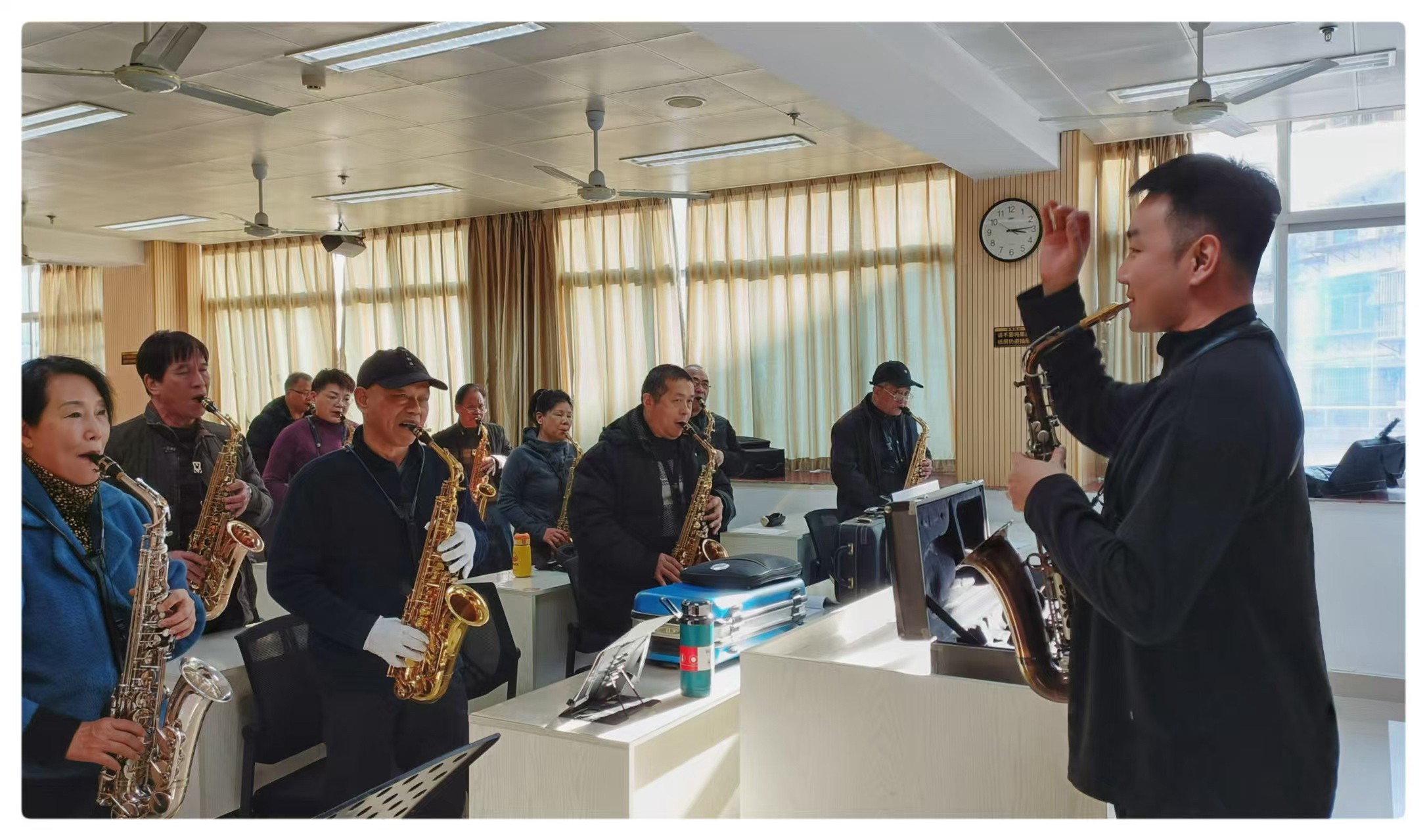 自2023年起,三明学院依托苏区美育发展学院的美育资源,启动对三明市老年大学的定向美育帮扶。学院选派梁思宇老师负责萨克斯管课程指导,并组织音乐专业学生以助教身份参与教学实践。学生们协助开展乐器指导与演奏示范,在服务中提升专业能力;师生团队根据老年学员特点共同打磨课程,为后续数字教材开发积累了宝贵经验。