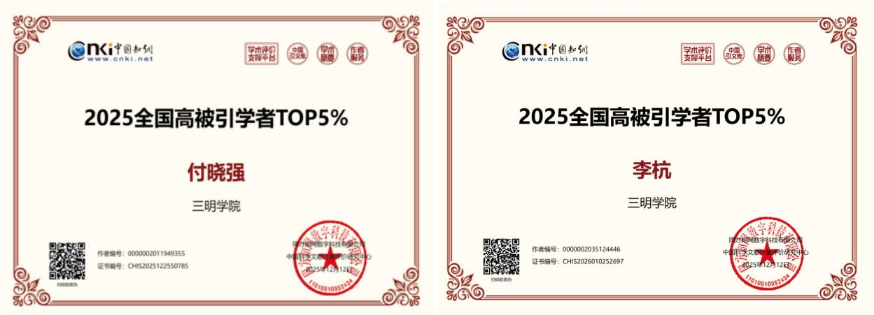 近日,中国知网的中国科学文献计量评价研究中心公布了“2025全国高被引学者”名单。建筑工程学院土木工程系付晓强、李杭博士入选“2025全国高被引学者TOP5%”。