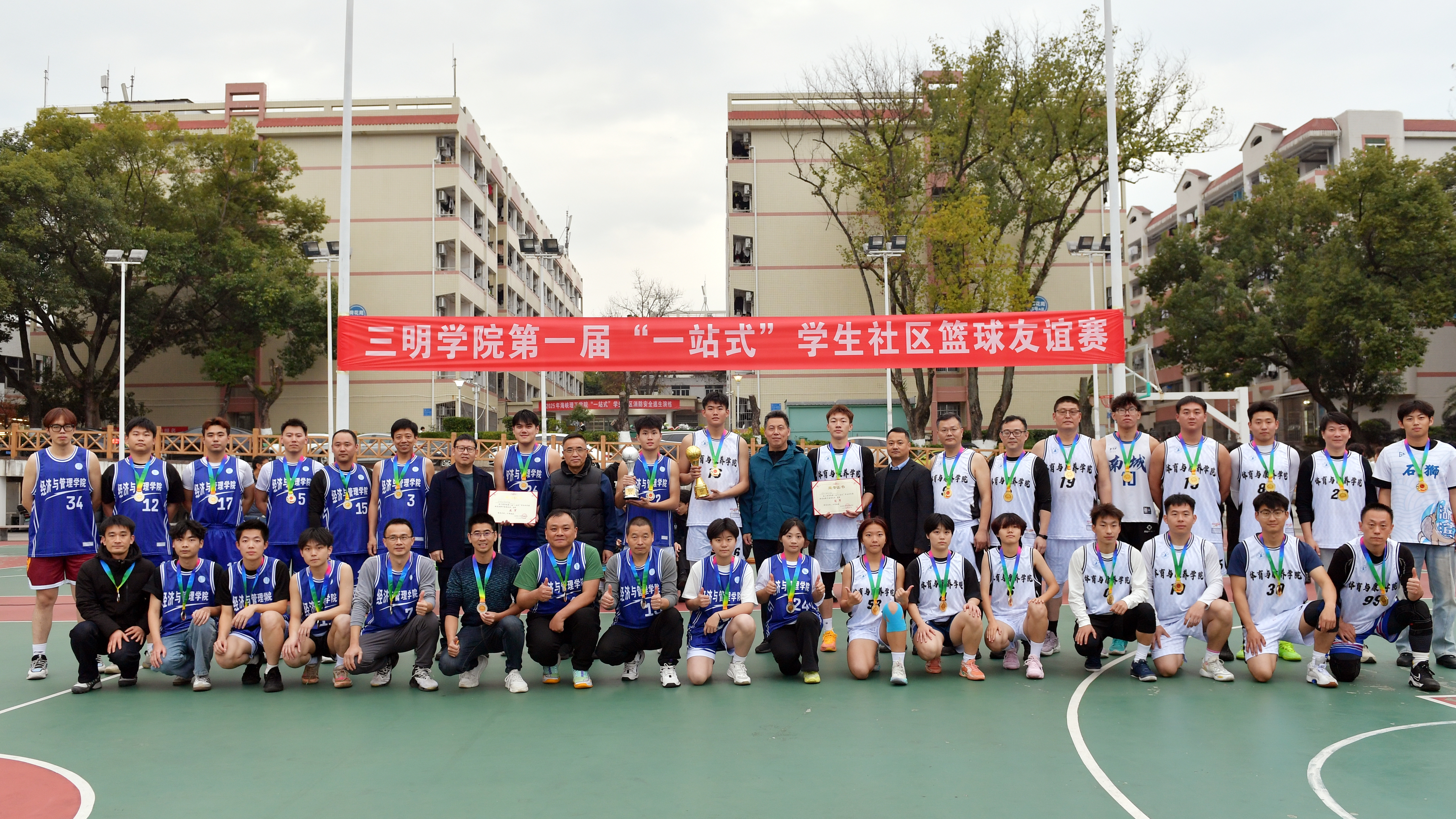 冬阳洒落,热血奔涌。12月17日至31日,三明学院第一届“一站式”学生社区篮球友谊赛在呐喊与拼搏中燃情启幕、温暖收官。来自全校221名师生,组成12支代表队,在这一方篮球场上,挥写下一段关于团结、温暖与成长的生动篇章。