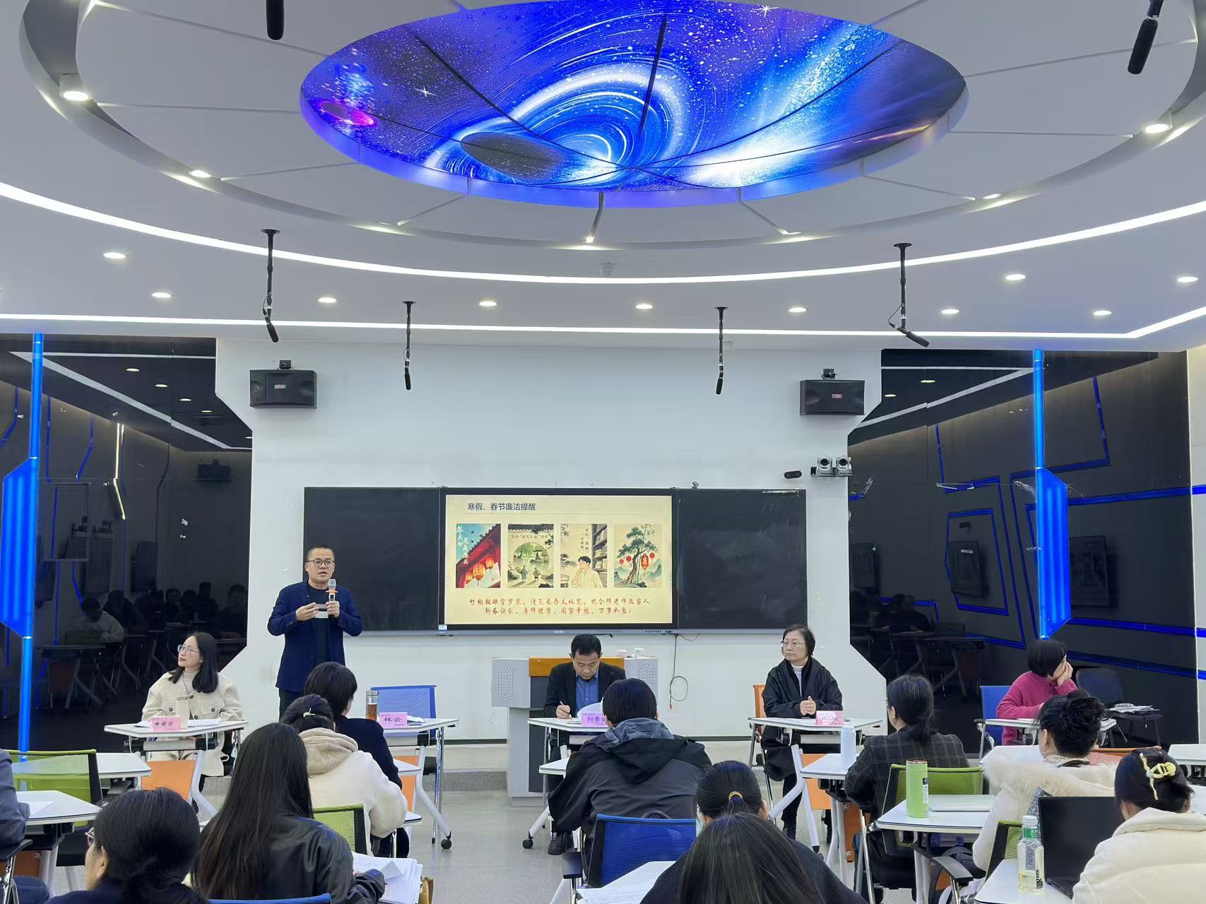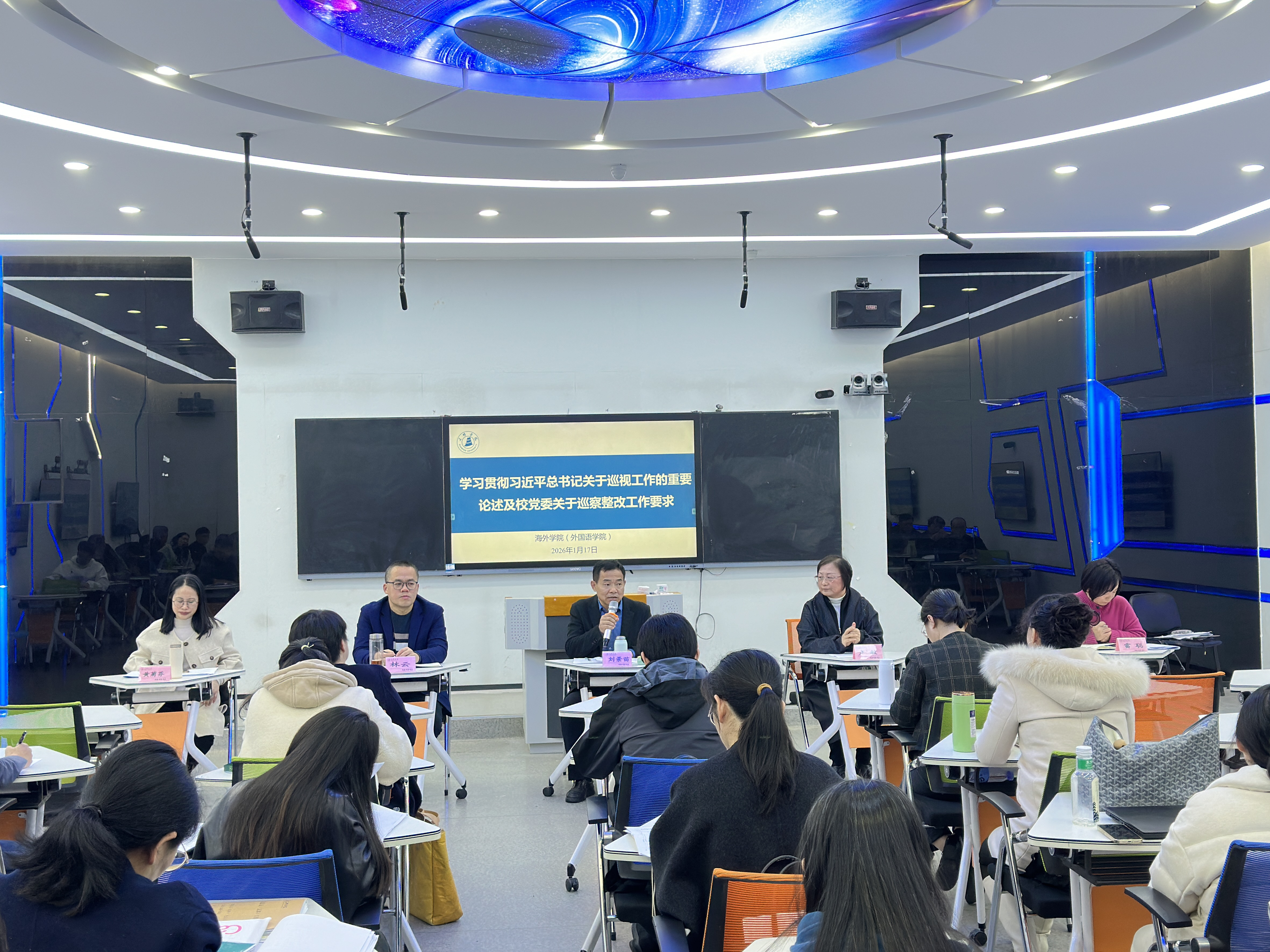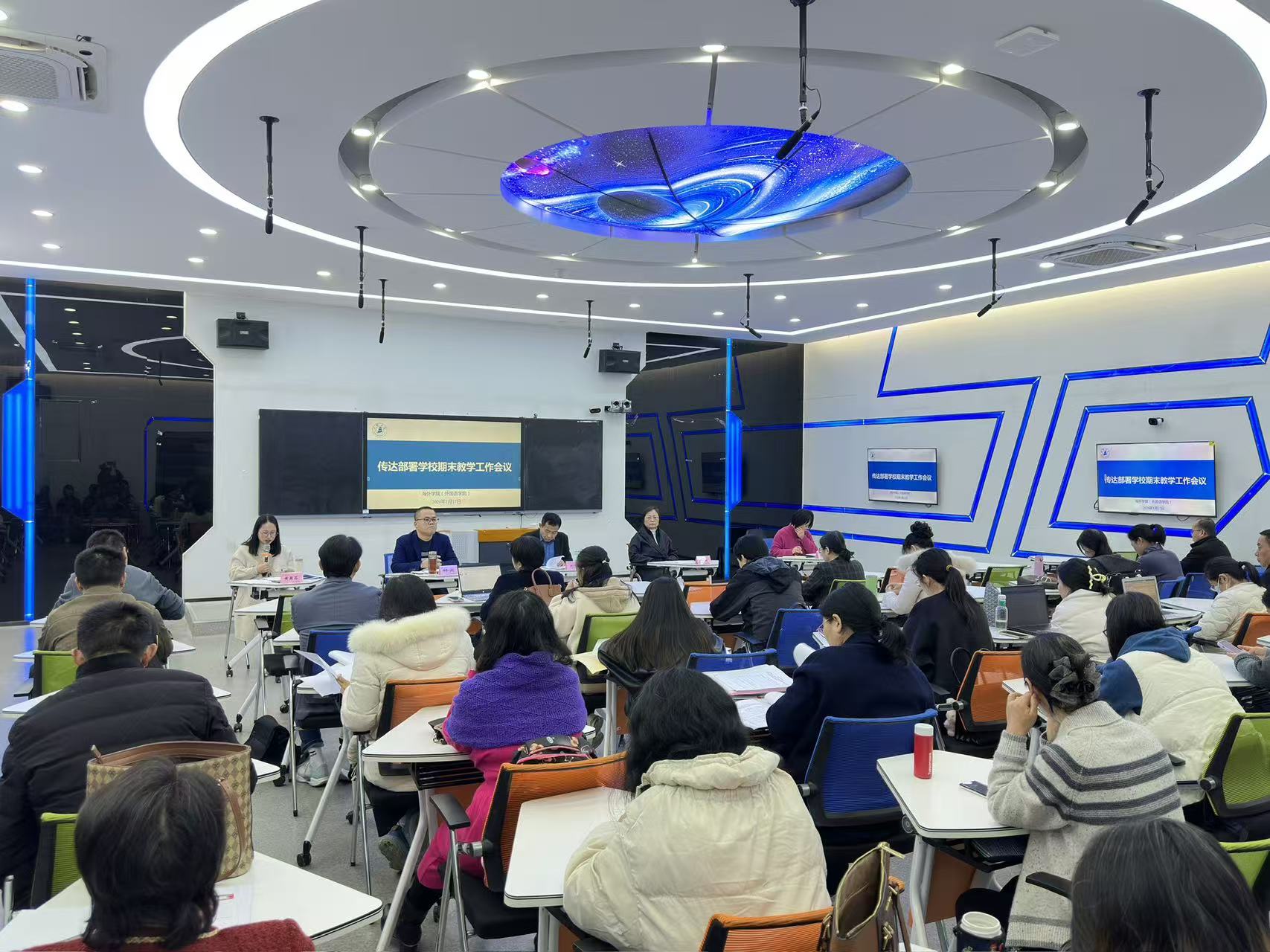 为全面梳理总结2025年学院工作,科学谋划寒假及新学期重点任务,1月17日下午,海外学院(外国语学院)在鸿文楼(二)智慧教室召开期末工作总结暨寒假重点工作部署会。全体教职工参加会议。