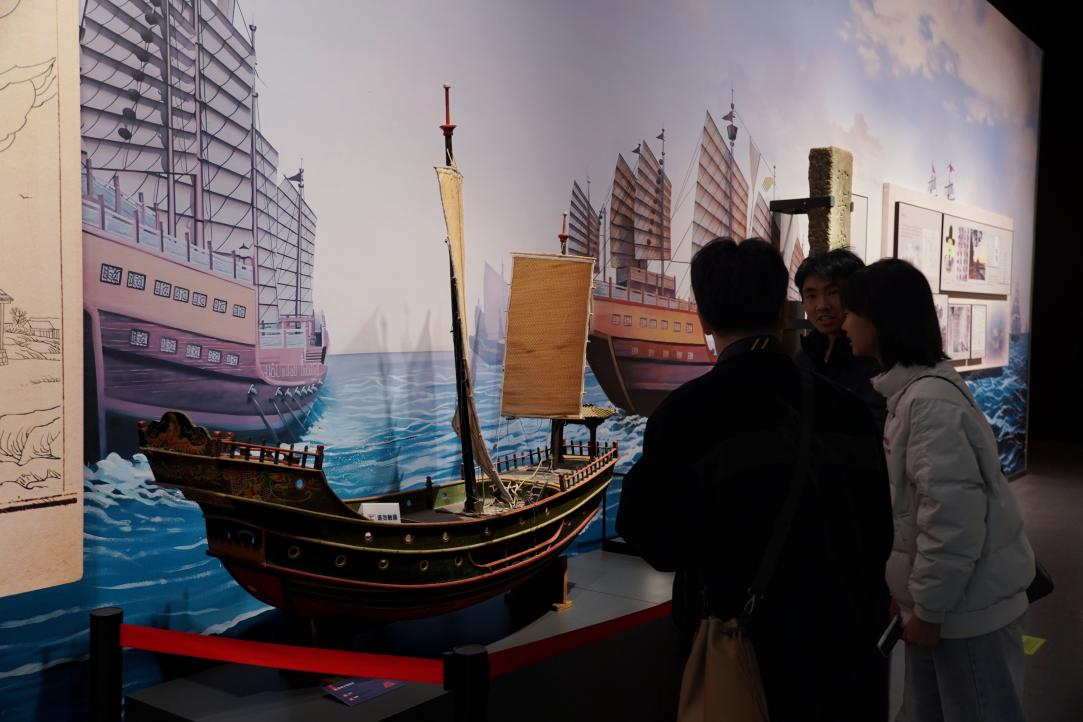 实践队走访闽台缘博物馆、海外交通史博物馆及市舶司遗址,探究福船水密隔舱等古代航海科技。