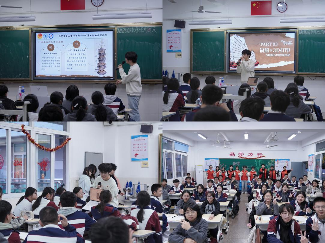实践队走进泉州外国语学校,开展“东西塔千年不倒的奥秘”主题课堂。借助3D模型与数字动画,讲解了建筑力学与文化内涵,激发青少年对海丝科技与文化的兴趣。
