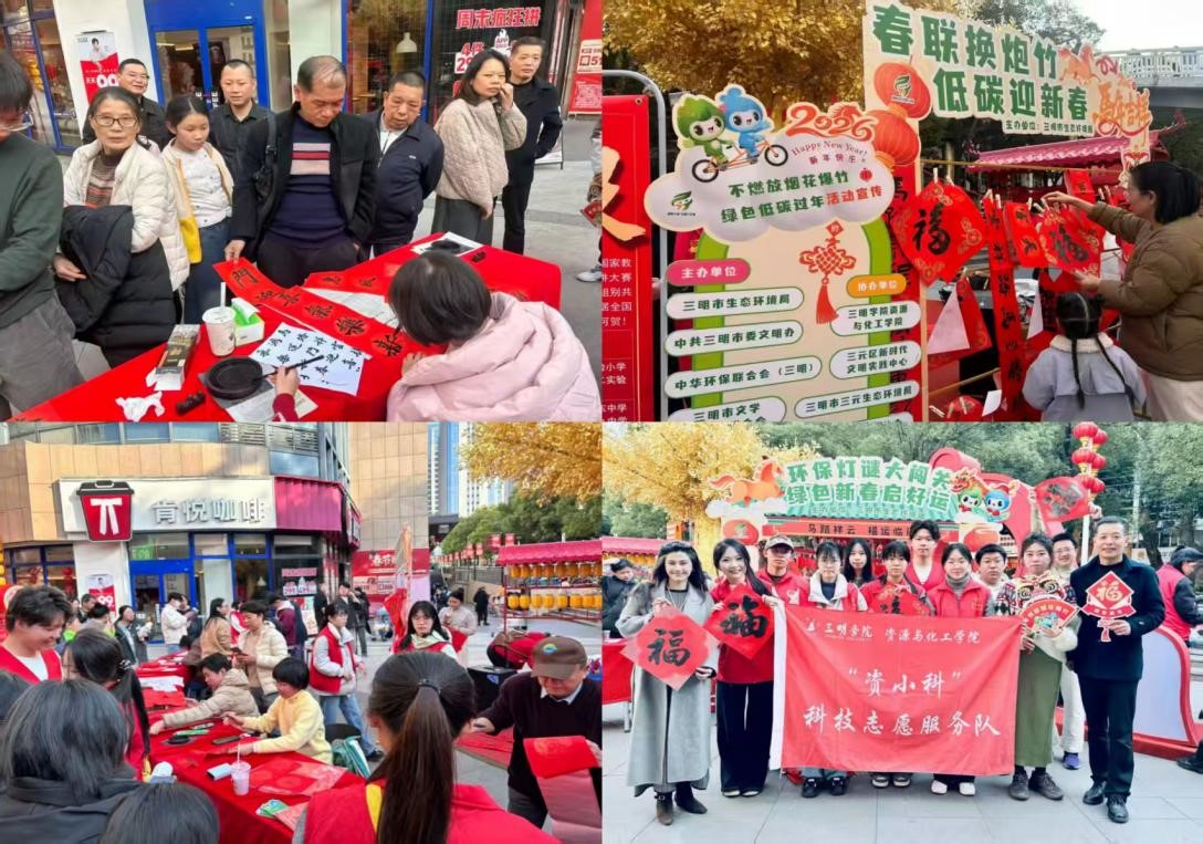 活动现场翰墨飘香,学院志愿者与书法爱好者共同挥毫,创作出一幅幅蕴含环保理念的春联。“绿色三明迎福至,蓝天净土纳祥来”等主题对联,将生态愿景融入传统祝福。市民纷纷驻足领取,在感受浓厚年味的同时,也将绿色低碳的生活理念带回家中,让环保新风随墨香传入千家万户。