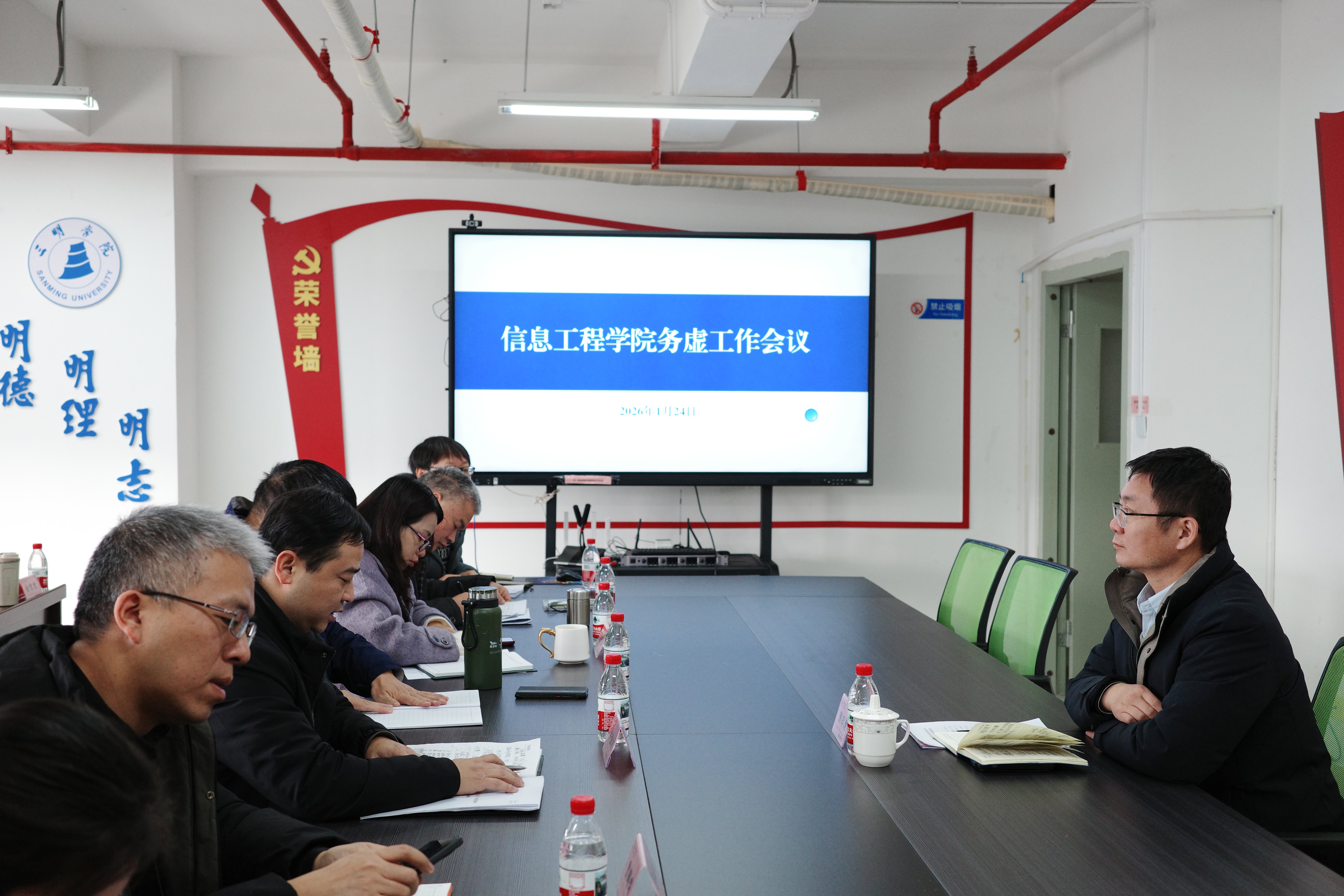 1月24日,信息工程学院召开务虚工作会议围绕申硕、中外合作办学、教学管理、基金申报、工程教育认证、学院文化建设六大核心议题展开研讨,为学院2026年高质量发展谋篇布局。陈日清副校长莅临指导,学院领导班子成员、各系主任、学科带头人、专业负责人及中层干部参会。