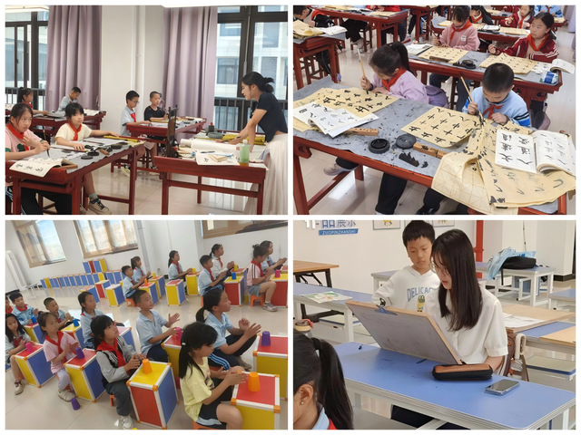 除假期集中实践,学院更将志愿服务深度融入日常。自“双减”政策实施以来,学院与附属实验小学共建“四点半课堂”项目,推动志愿服务常态化、专业化。每周三下午,书法、绘画、舞蹈等兴趣课堂准时开启,成为小学生拓展素质的乐园,更是师范生不可或缺的“练兵场”。每学期超400人次志愿者在此锤炼教学技能。