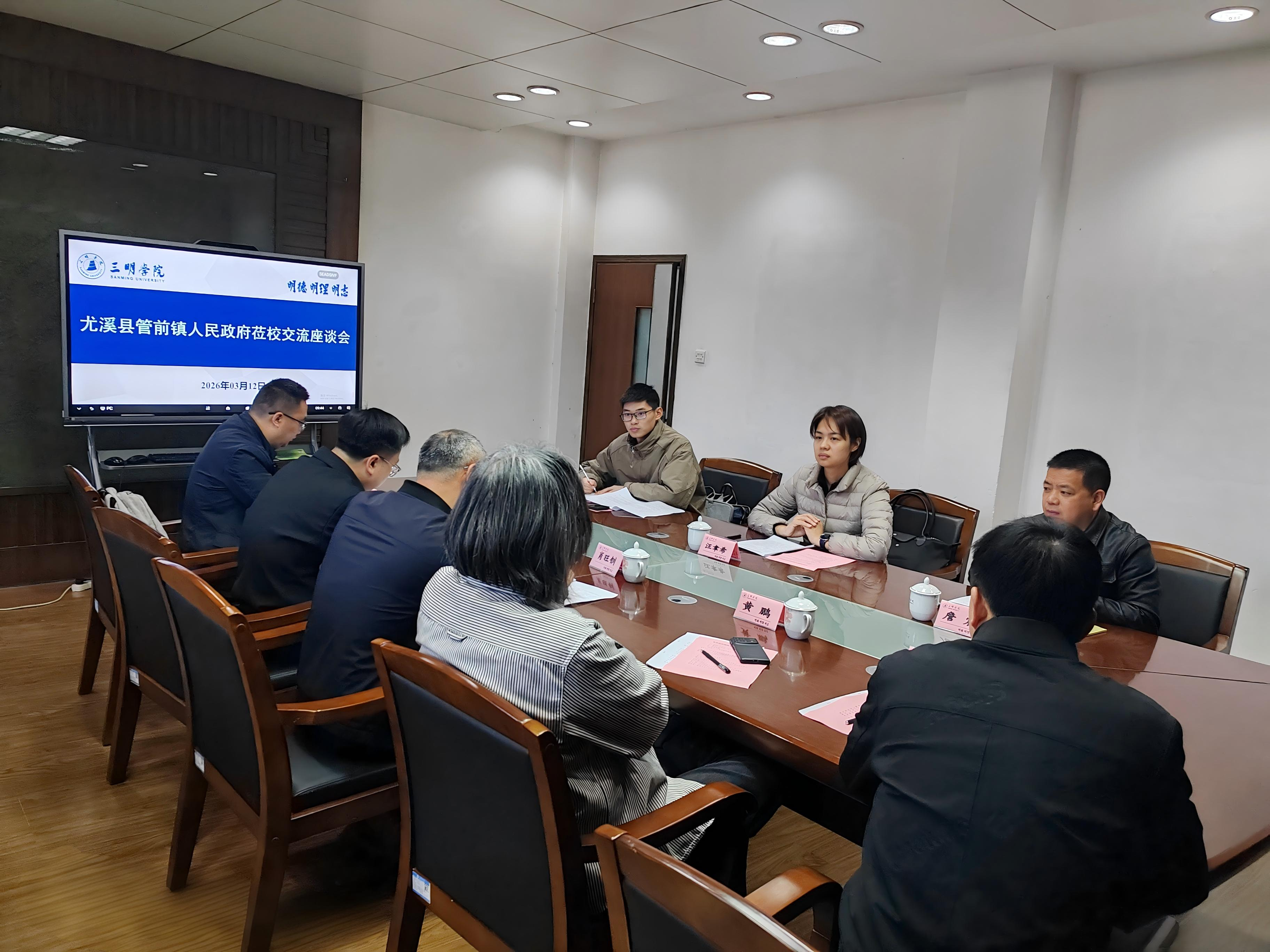 3月12日,尤溪县管前镇党委书记汪聿希一行来校洽谈校地合作事宜。科技处(社科处)、社会合作处、创业管理学院、经济与管理学院、资源与化工学院等有关单位参加了交流会。
