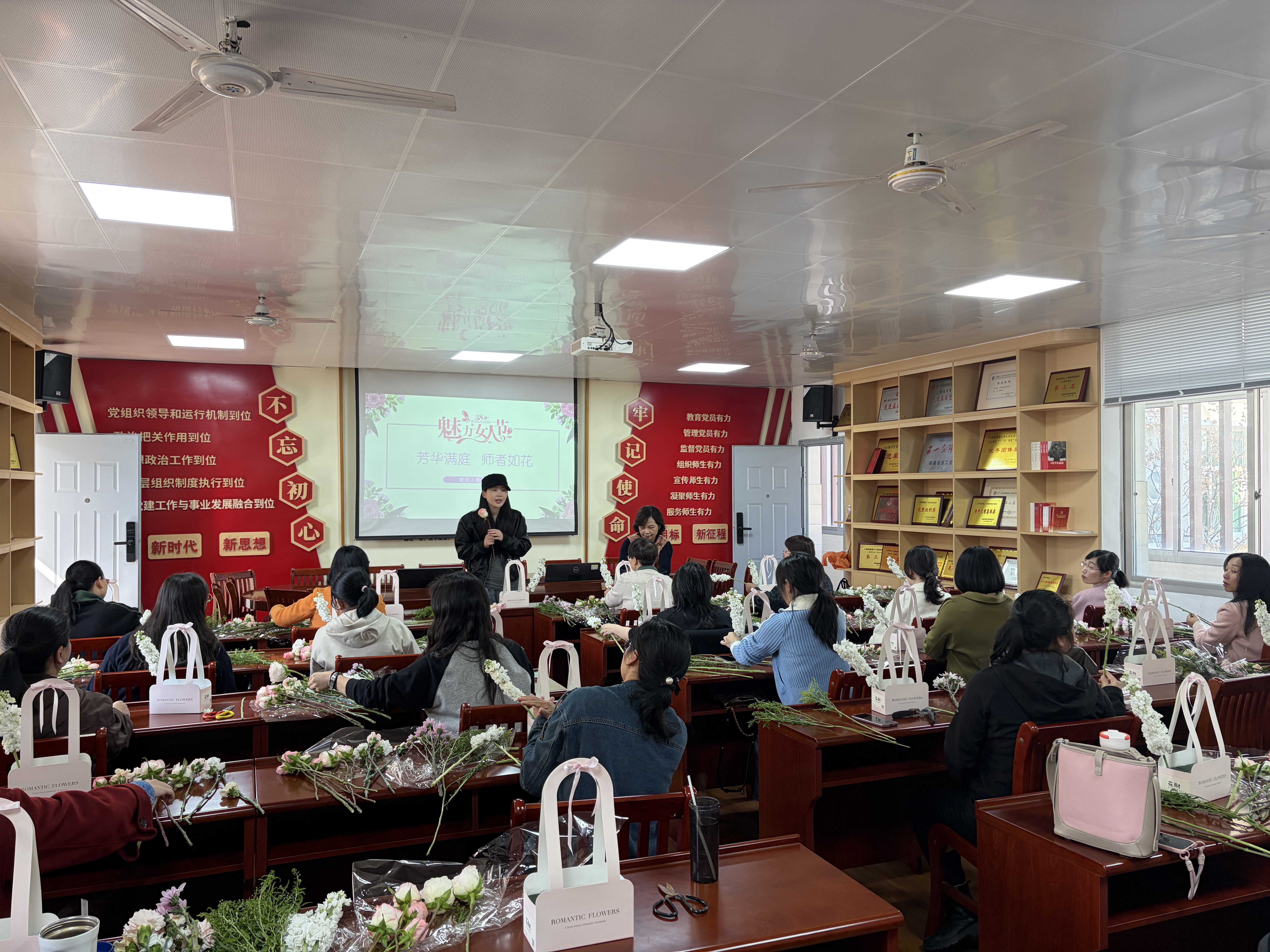 为庆祝第116个“三八”国际妇女节,丰富女教职工精神文化生活,提升艺术修养与生活情趣,3月8日下午,建筑工程学院工会在致用楼307举办“芳华满庭,师者如花”主题插花活动。学院女职工欢聚一堂,在花香与欢笑中度过了一个温馨浪漫的节日。