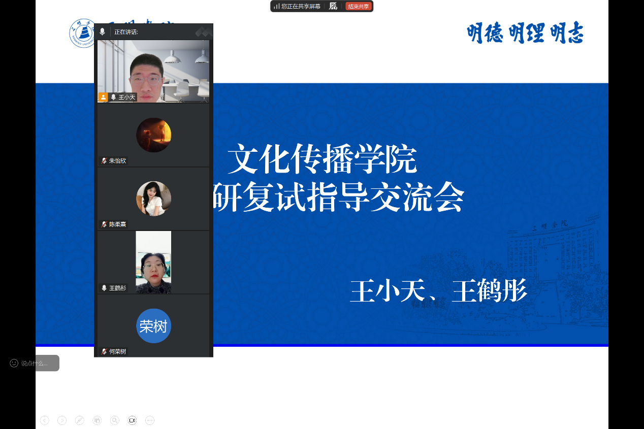 3月13日晚,文化传播学院通过线上平台举办考研复试指导交流会。文化传播学院王小天、王鹤彤两位博士担任主讲,为即将参加复试的学子梳理备考要点、传授实用技巧、解答心中疑惑。