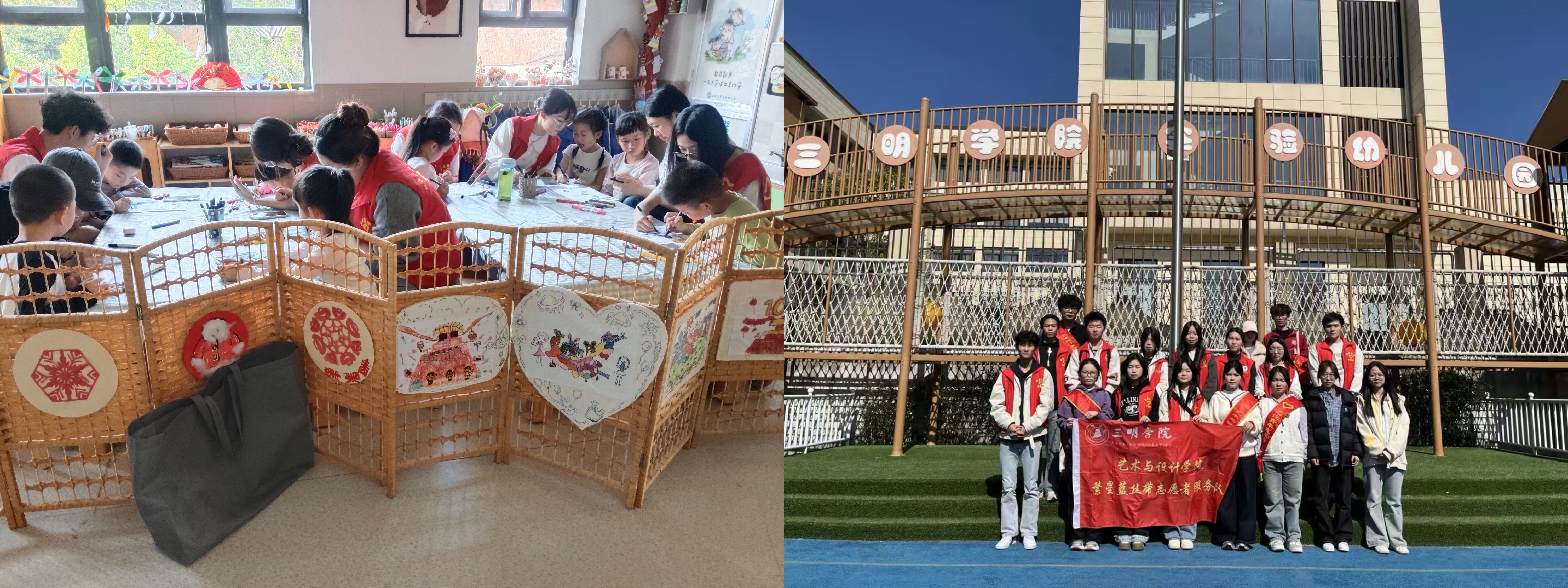 学院繁星志愿服务队“青创工坊”团队前往三明学院实验幼儿园,开展“青春学雷锋·童心共成长”美育支教活动。志愿者们立足艺术设计专业优势,结合儿童特点开设手工制作与创意绘画课程。绘画课上,志愿者生动地讲解绘画技巧、耐心指导,孩子们大胆配色、尽情创作;手工环节中,志愿者手把手教孩子们折纸、黏土塑形,课堂气氛活跃。